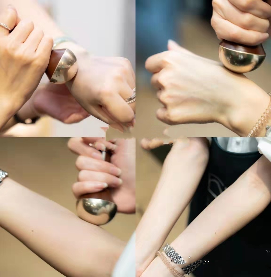 Set the pressure, and then do circular movement around the eyes and cheekbones more smoothly. however