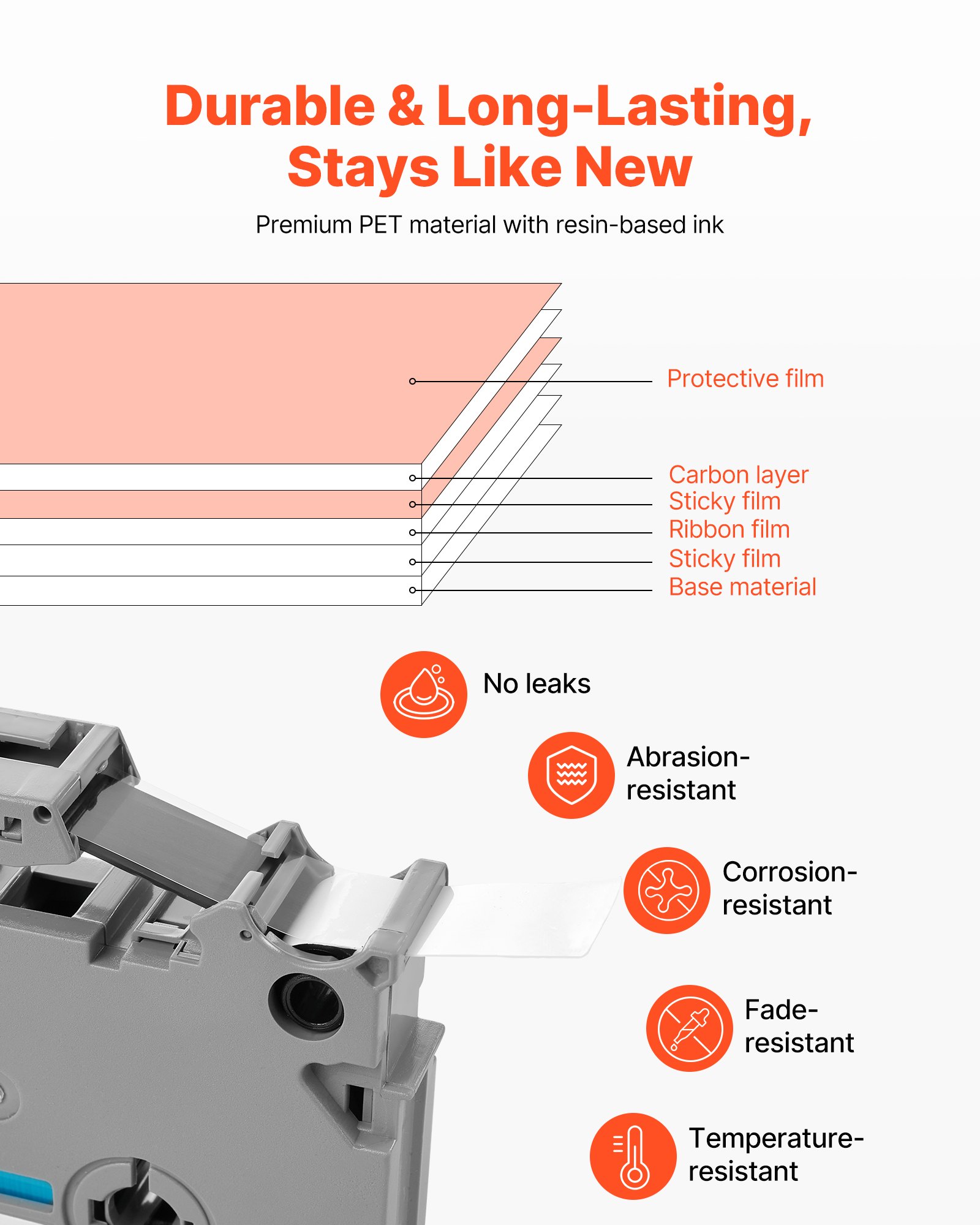 Label Maker Tape 6 Pack 12 Mm Colored Label Maker Refills TZe-131 TZe-231