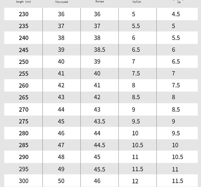 Size: 36/37/38/39/40/41/42/43/44/45/46/47/48