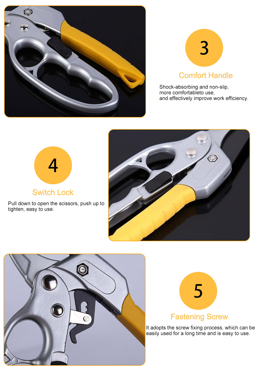 Safe lock button to close and open the pruning of scissors easily and easily.