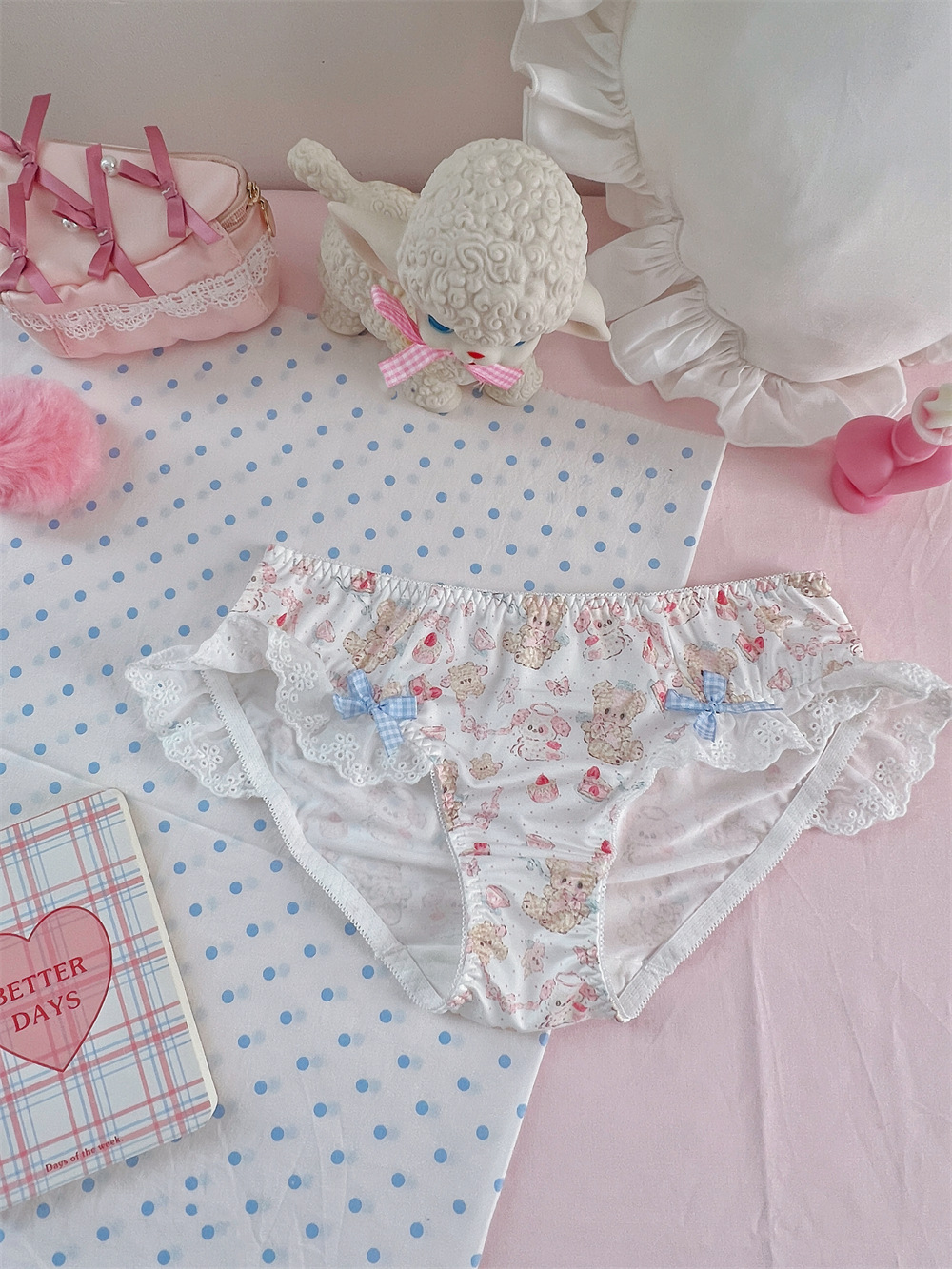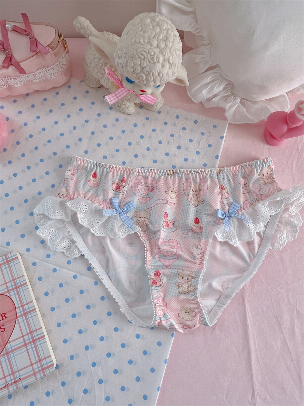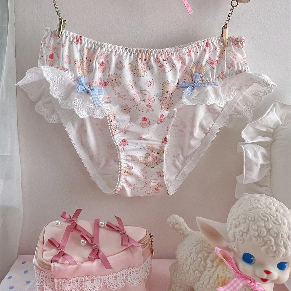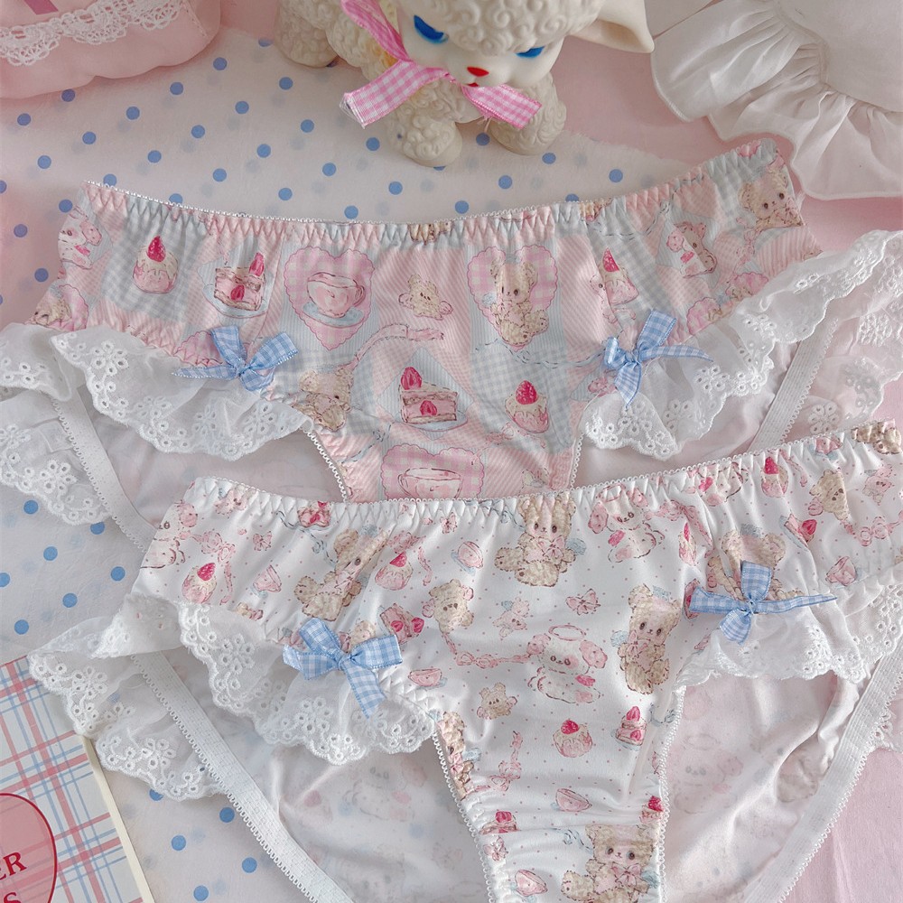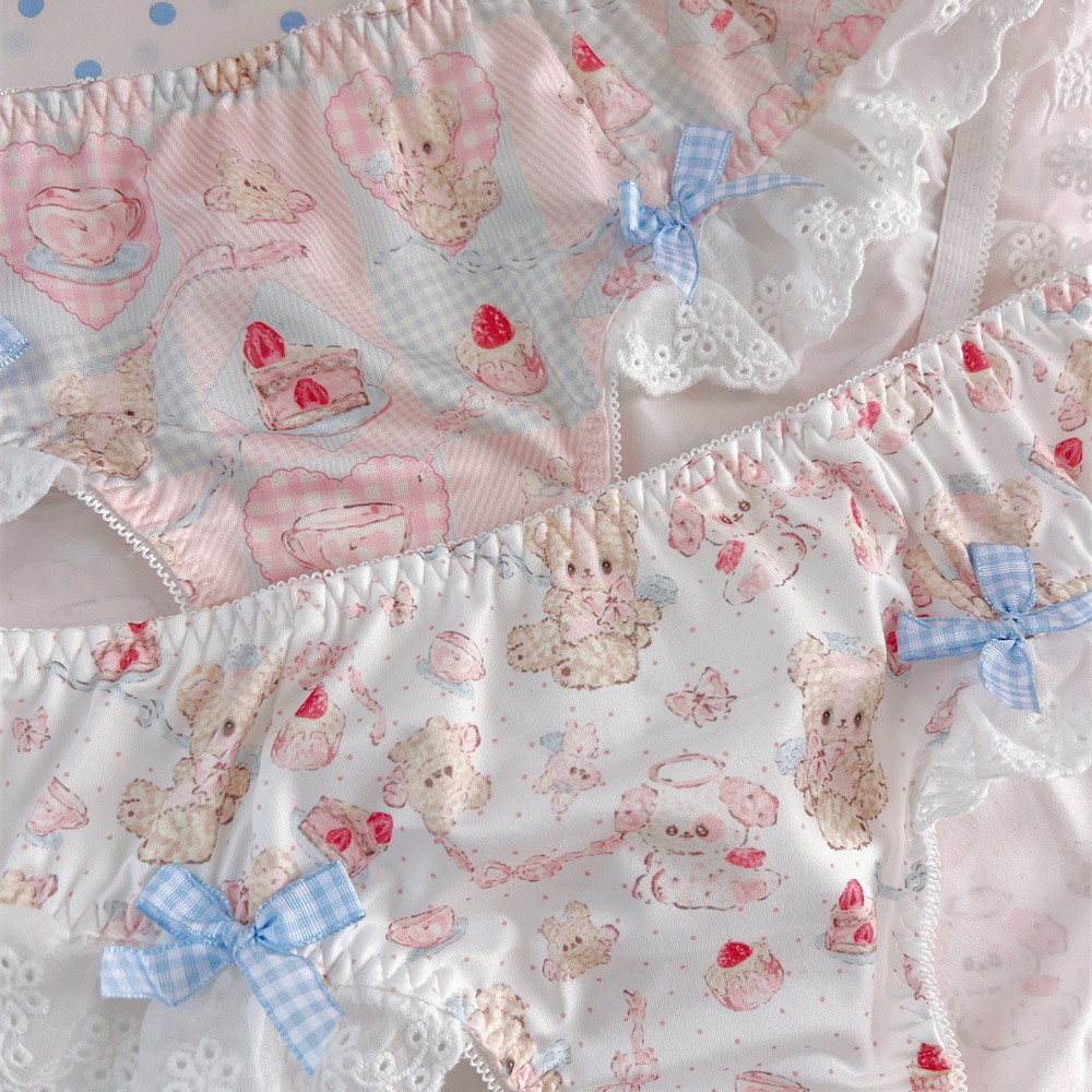 Lace Bow Bear Dessert Printed Shorts