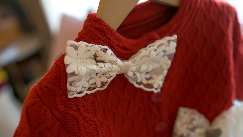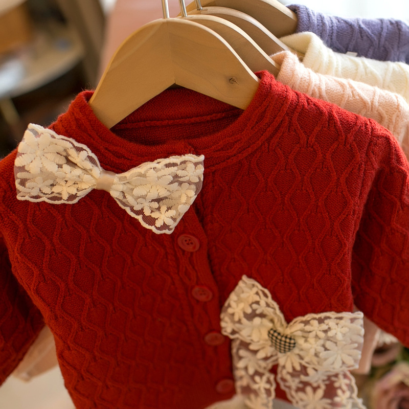 Lace Bow Girls Crew Neck Cardigan