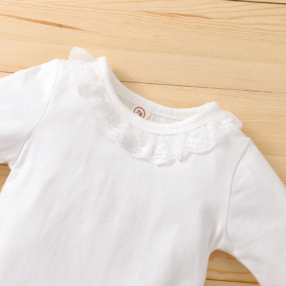 Lace Collar Long Sleeve Rombo Bow Shorts Three Piece Set