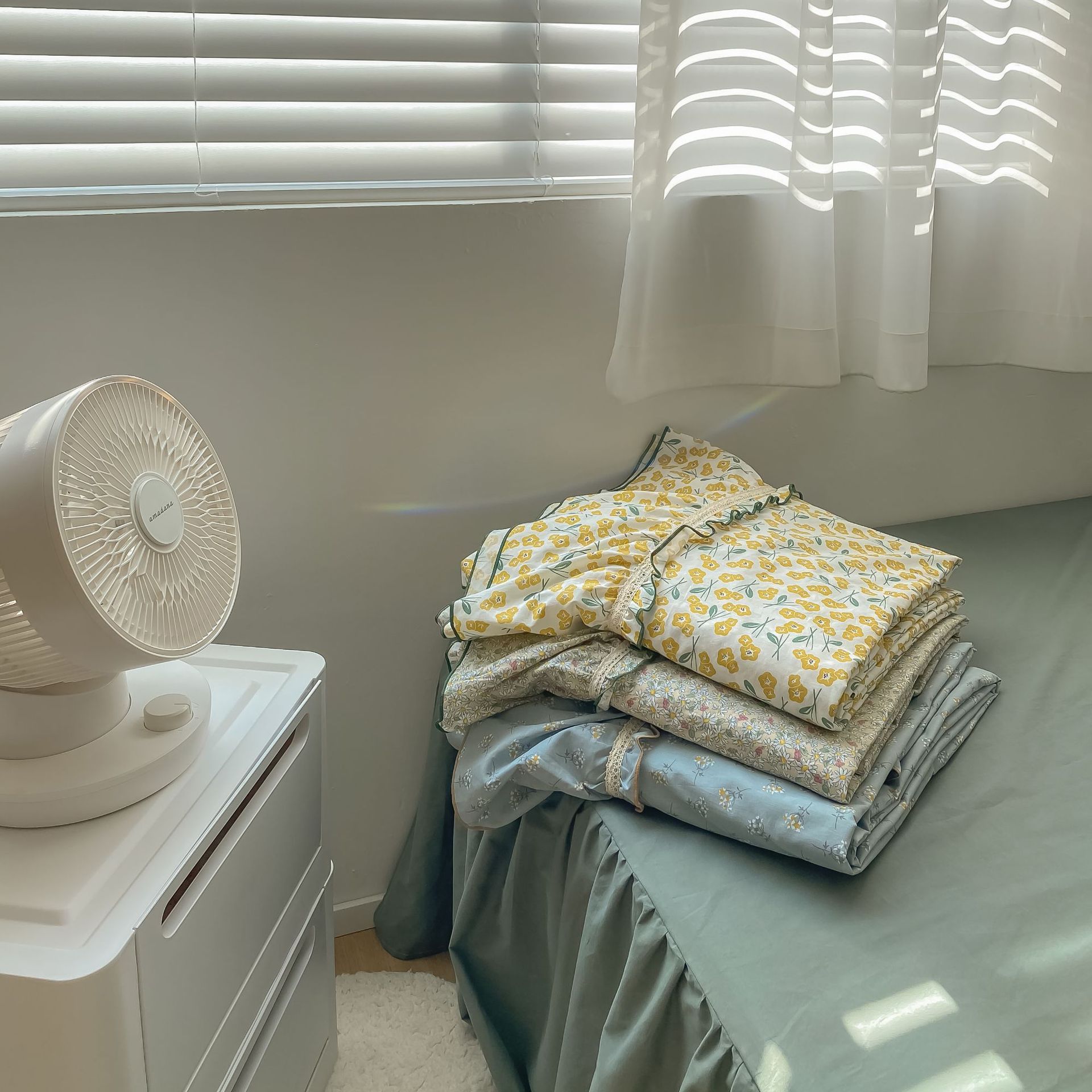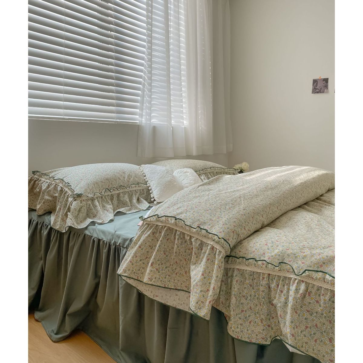 A: Standard 1.5 bed skirt: quilt cover 200*230, bed skirt 150*200 (bed skirt height 50CM), pillowcase 48*74