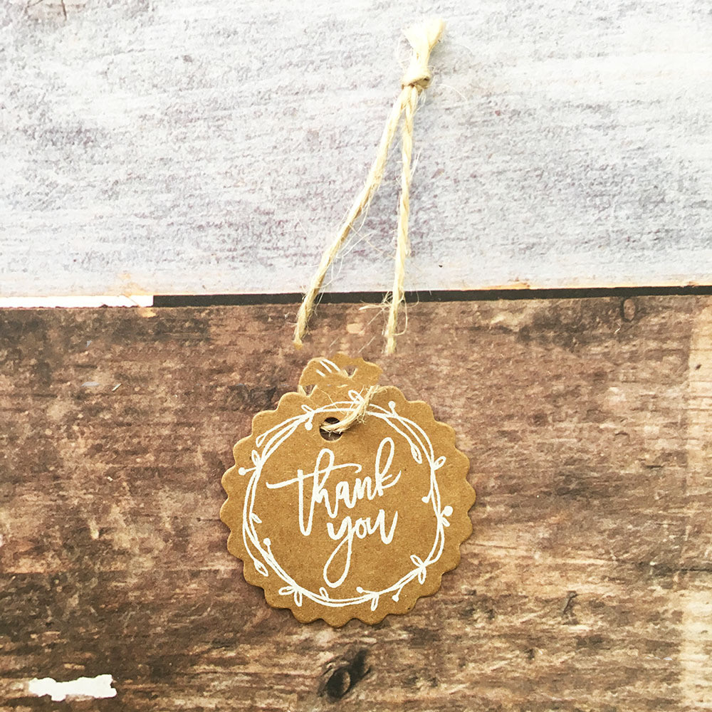 [Name] printed white thank you lace kraft paper tag