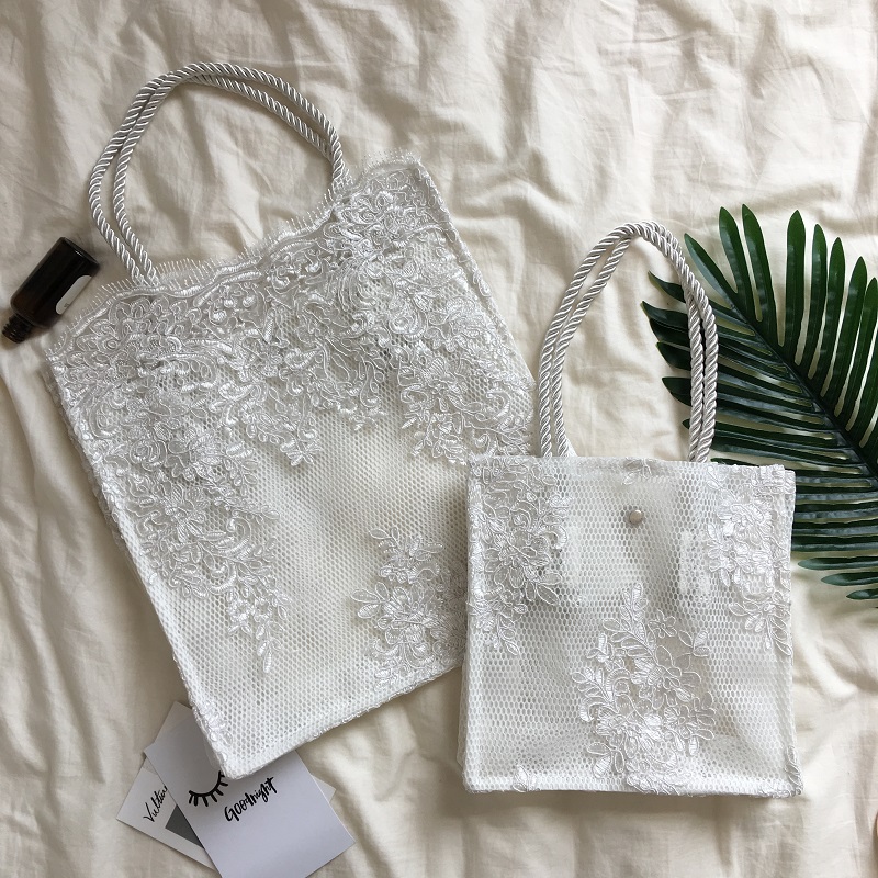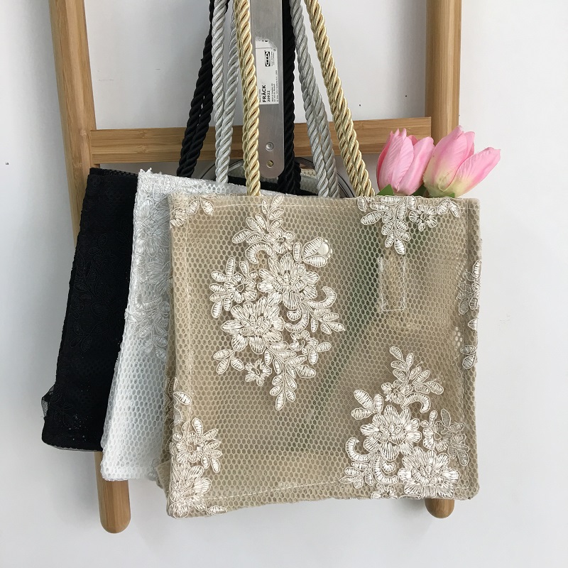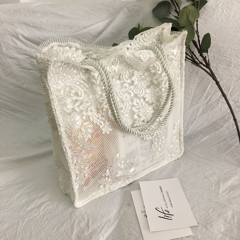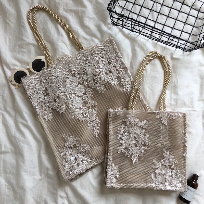 A bag that individual likes very much, having the lasting appeal that restores ancient ways to take gentle and pure and fresh feeling again. Beautiful things are always one in a million, the description of this bag is perfect. The bag is not big and looks very light. The lace of this bag is all handmade and needs double layer compound. There are few lace factories in the market, and the fabrics need to be dyed.