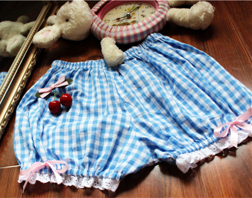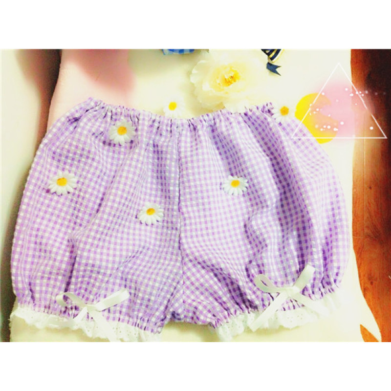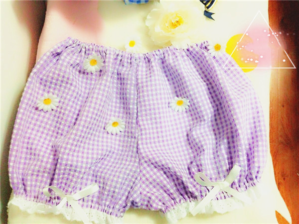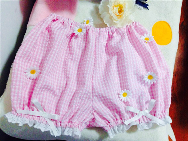 Color classification: soft purple check seersucker, soft powder check seersucker, blue check pink check, cat pumpkin pants