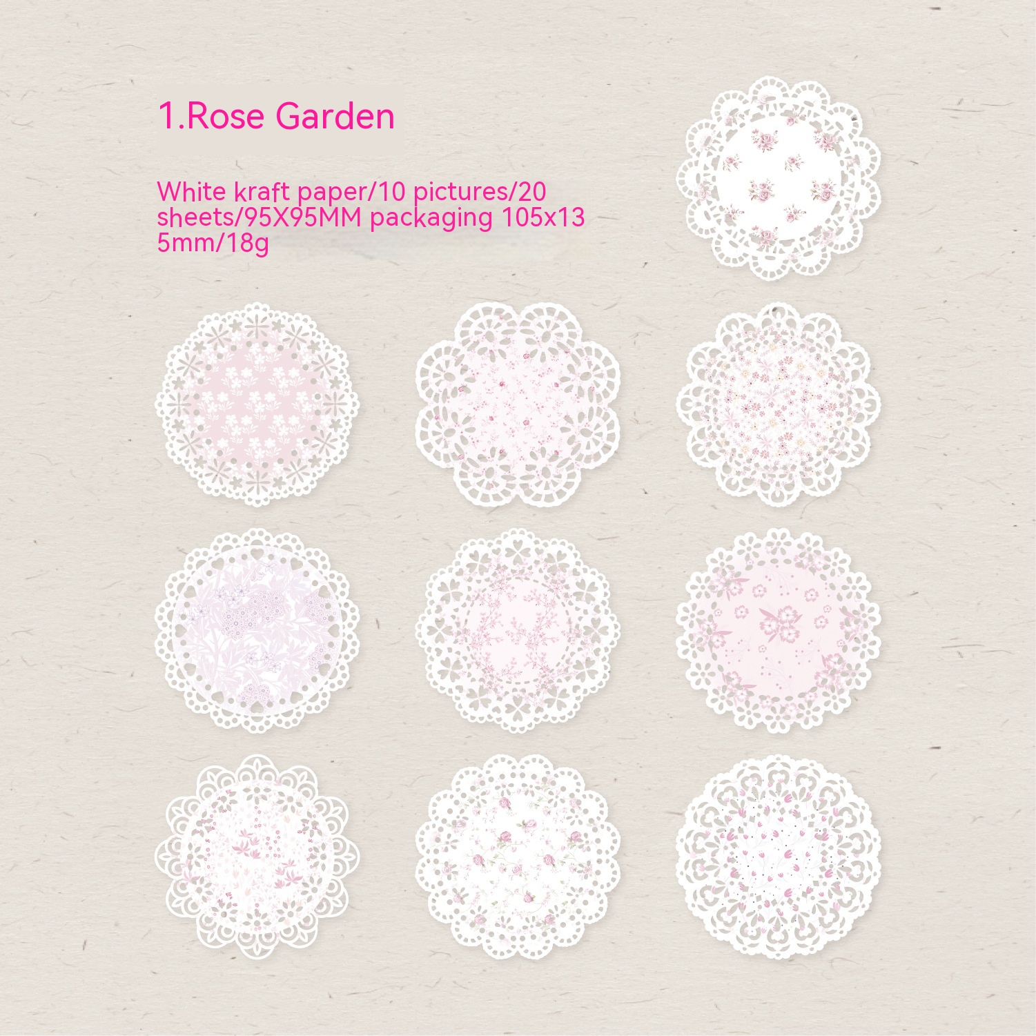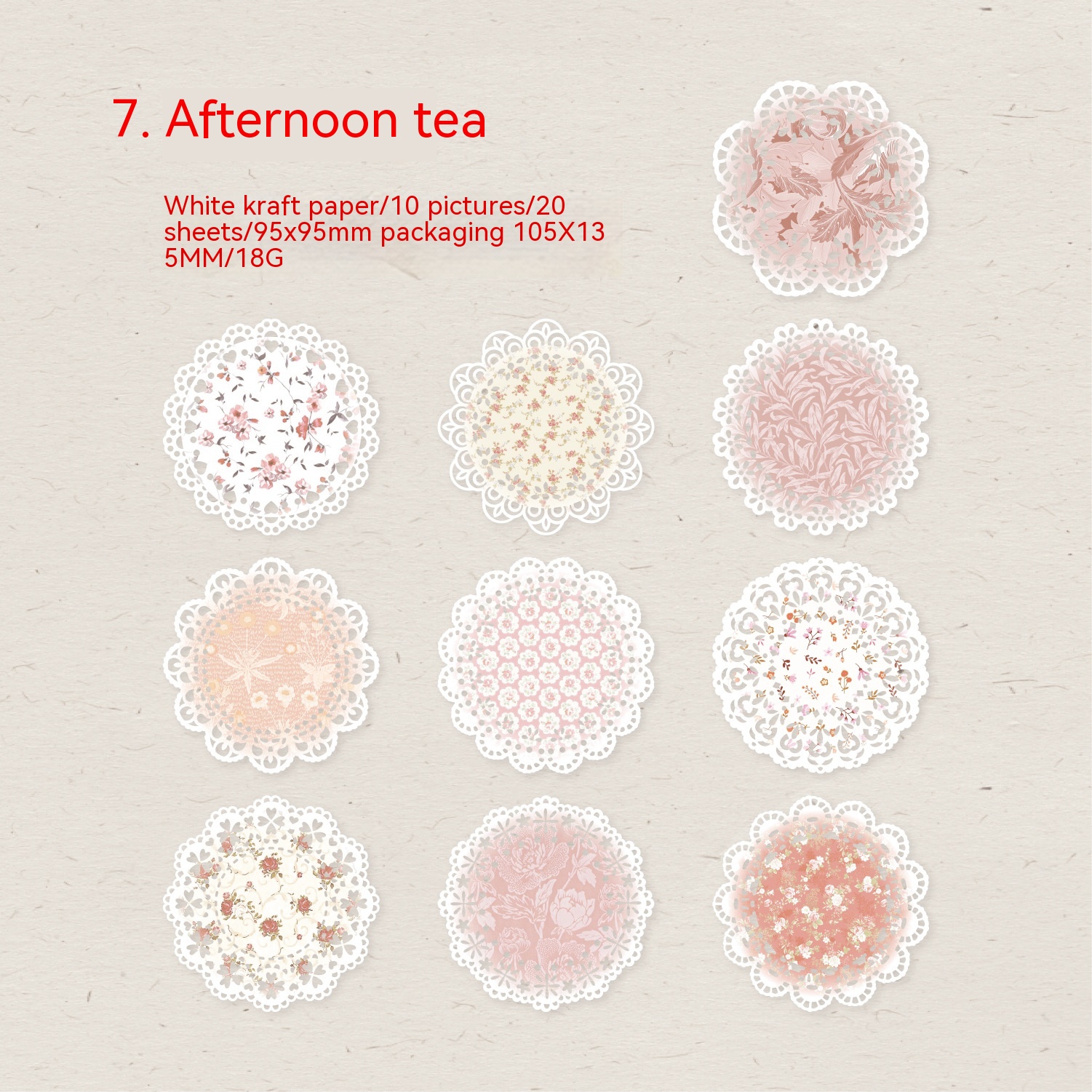 Cover color: 1. Rose garden, 2. Waltz, 3. Mist yarn, 4. Pastoral notes, photo album, ballet slipper, 7. Afternoon tea, lace umbrella
