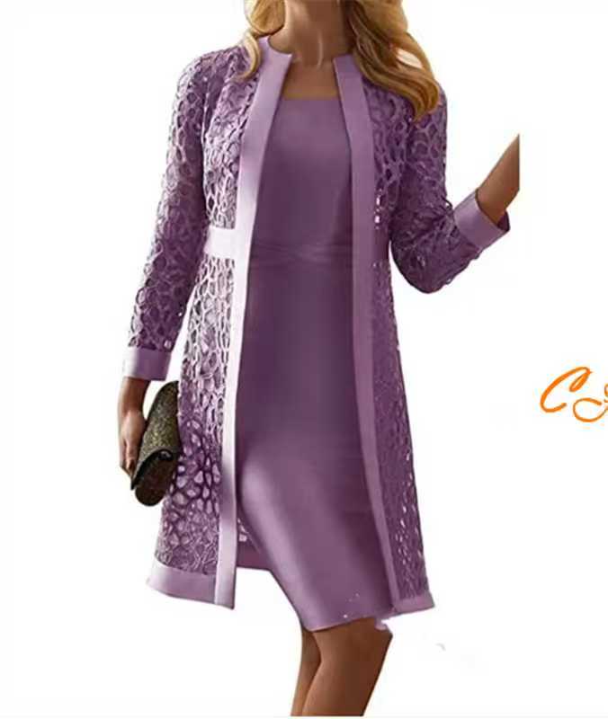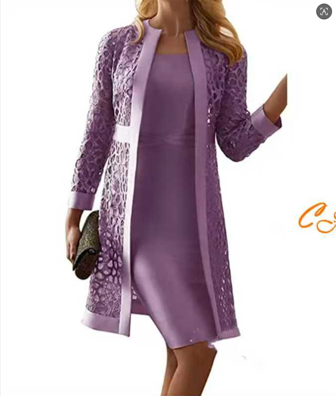 Lace Openwork Sweater Vest With No Sleeves And Skirt Set