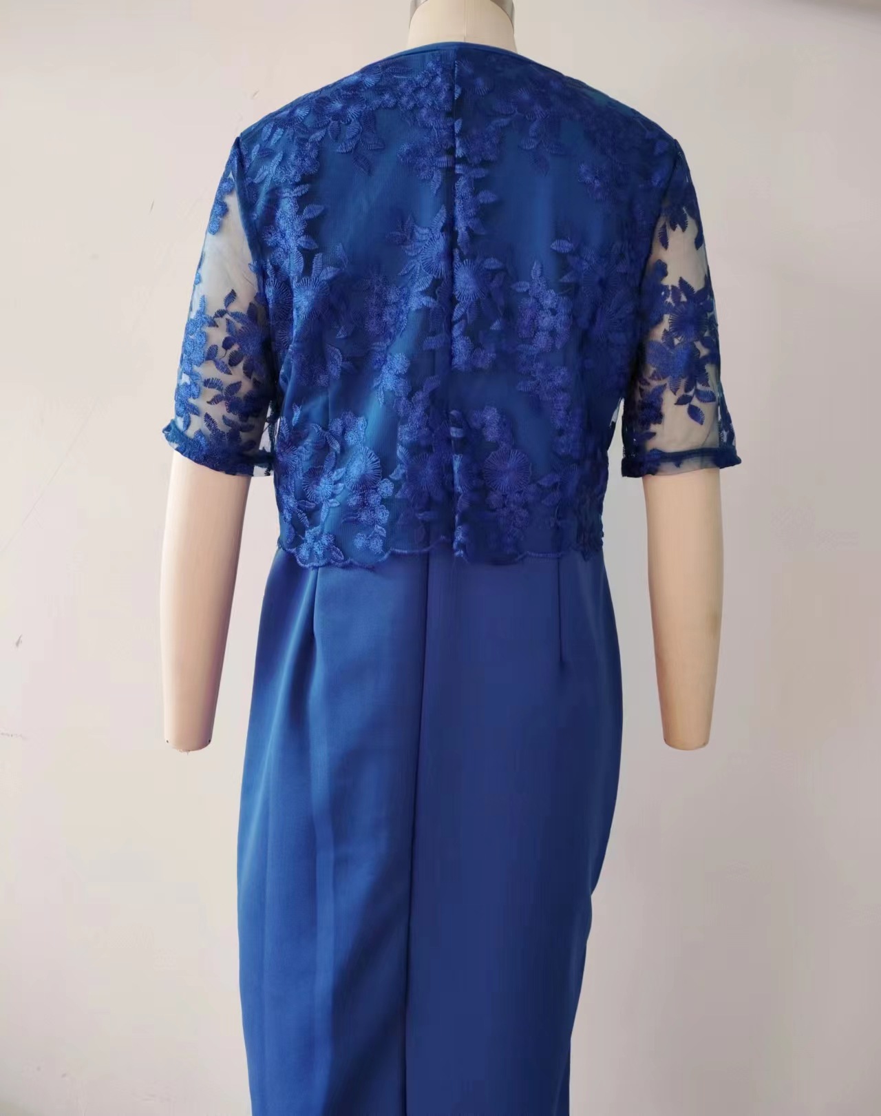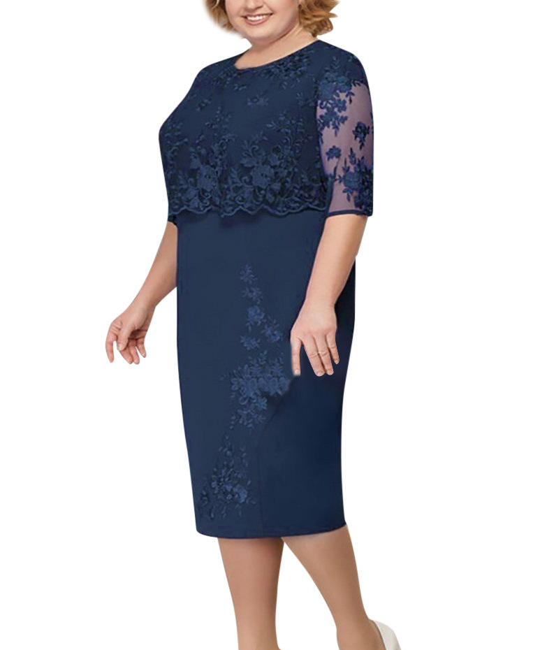 Lace Patchwork Short-Sleeve Layered Vest Style Plus Size Dress