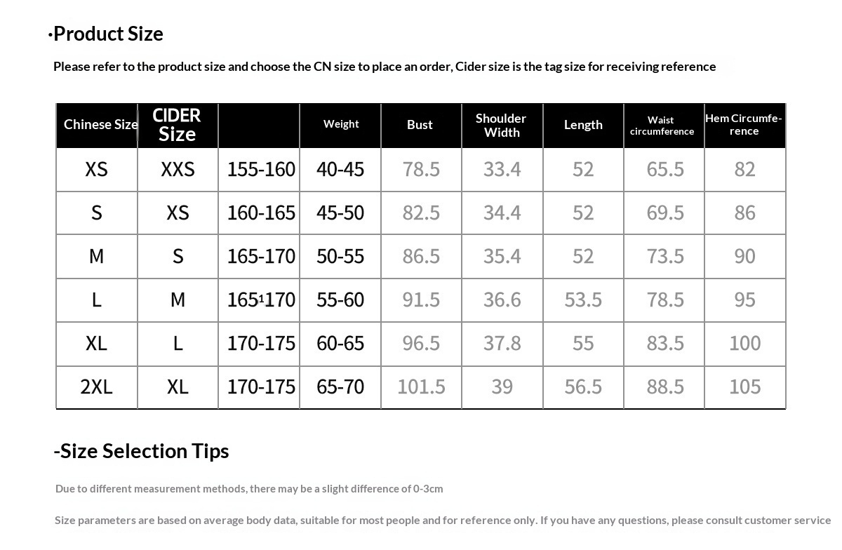 1. Asian sizes are 1 to 2 sizes smaller than European and American people. Choose the larger size if your size between two sizes. Please allow 2-3cm differences due to manual measurement. 2. Please check the size chart carefully before you buy the item, if you don't know how to choose size, please contact our customer service. 3.As you know, the different computers display colors differently, the color of the actual item may vary slightly from the following images.