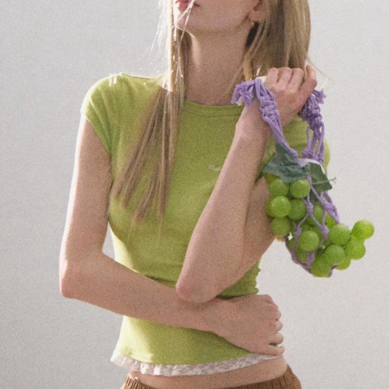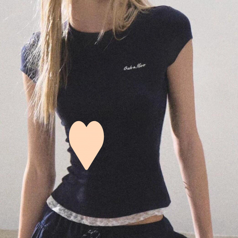 Lace Skin-friendly Slim Fit Patchwork Slimming T-shirt Summer Top For Women