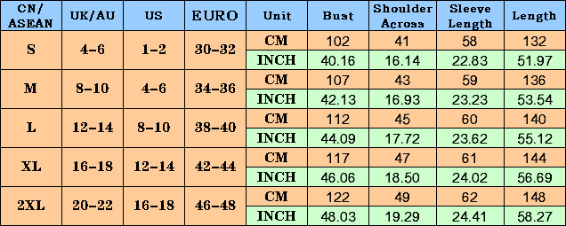 2. Please check the size chart carefully before you buy the item, if you don't know how to choose size, please contact our customer service.