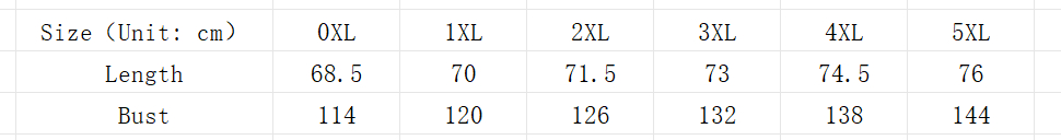 Size: 0XL, 1XL, 2XL, 3XL, 4XL, 5XL
