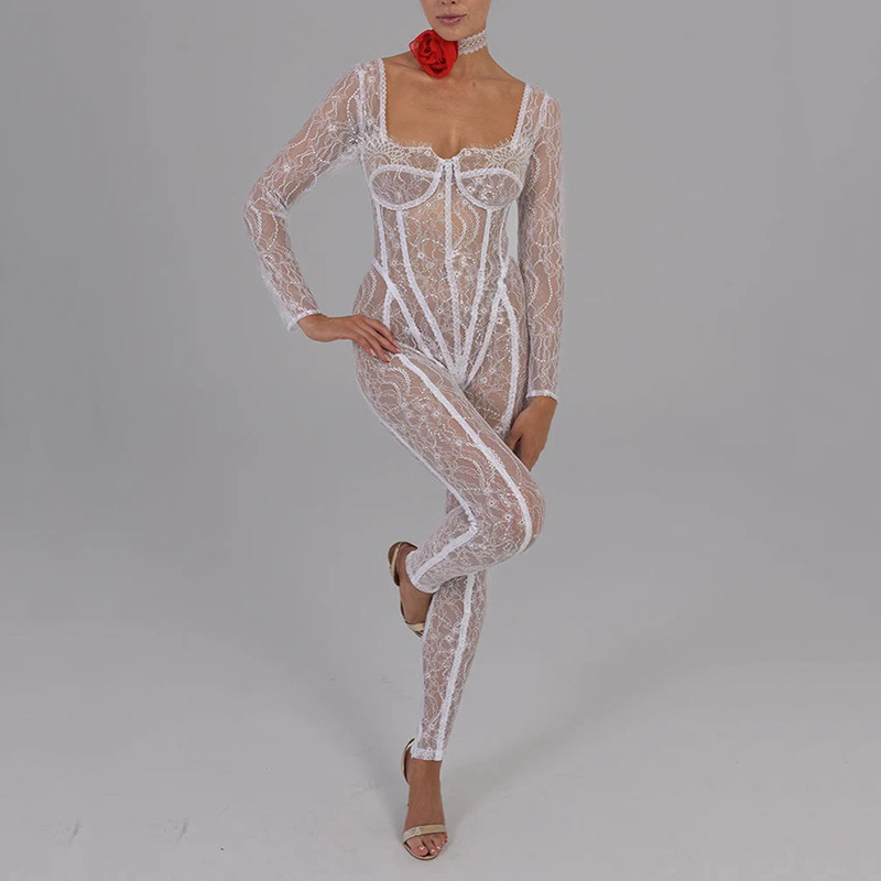 Lace Stitching Sexy Temptation Low-cut Jumpsuit