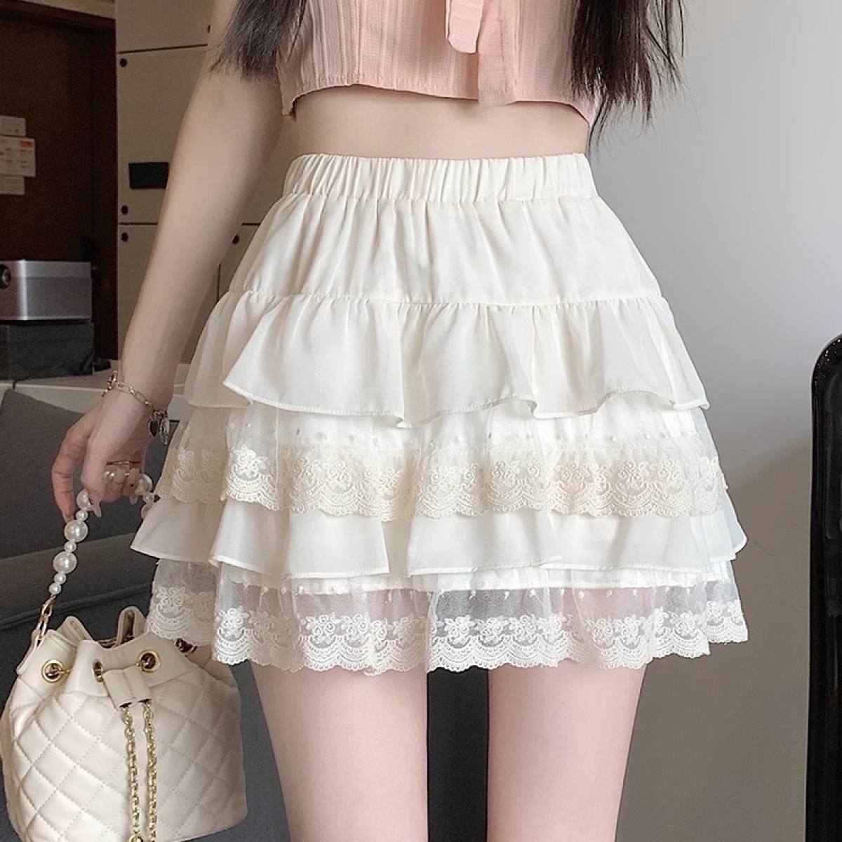 Lace-trimmed Cake-style Short Skirt For Women
