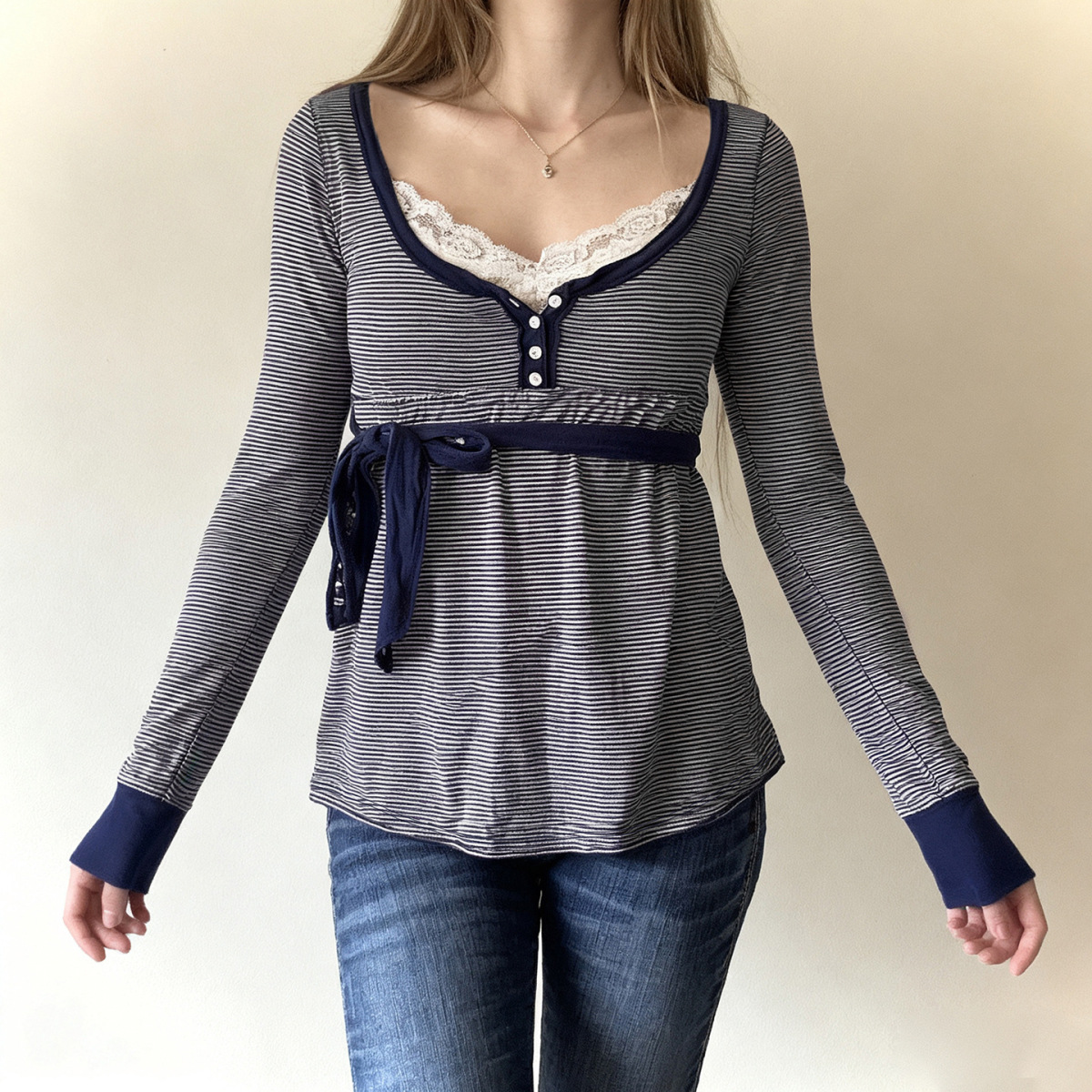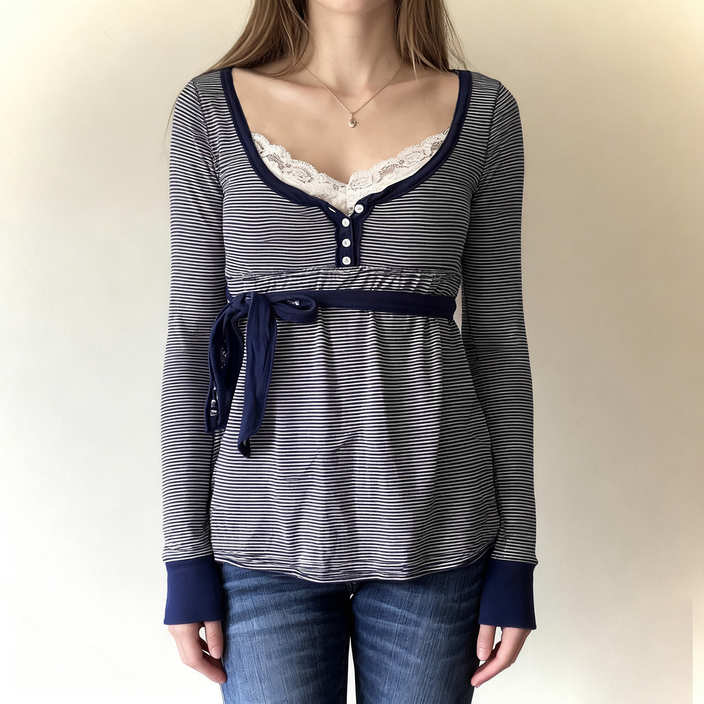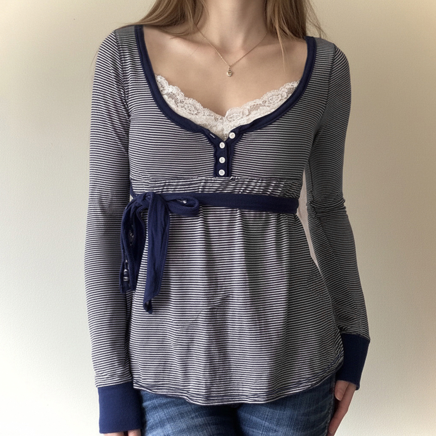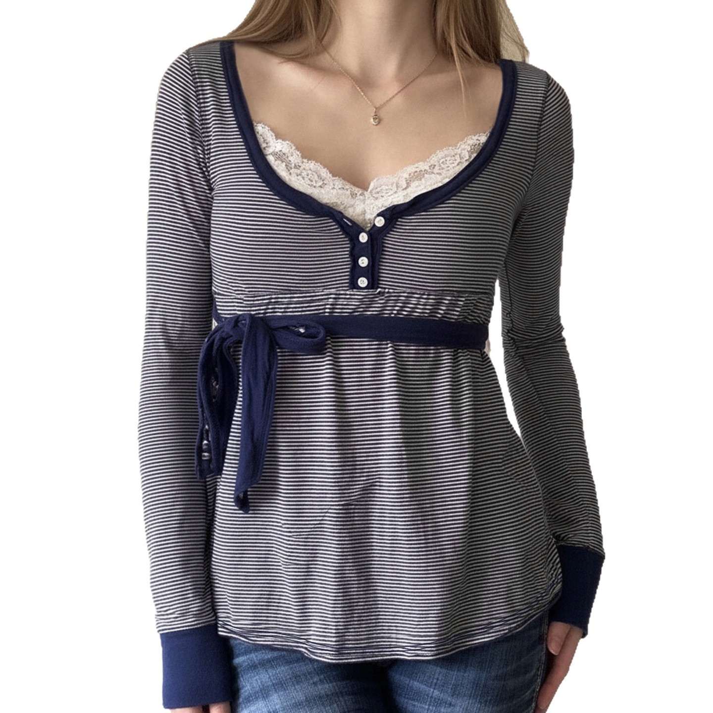 Trendy Elements: Lace-up details, lace, stripes