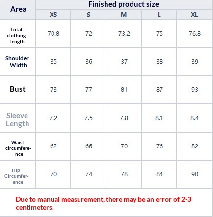 1. Asian sizes are 1 to 2 sizes smaller than European and American people. Choose the larger size if your size between two sizes. Please allow 2-3cm differences due to manual measurement. 2. Please check the size chart carefully before you buy the item, if you don't know how to choose size, please contact our customer service. 3.As you know, the different computers display colors differently, the color of the actual item may vary slightly from the following images.