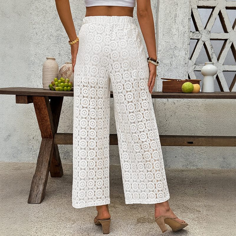 Lace Trousers Summer High Waist See-through Straight-leg Pants Women