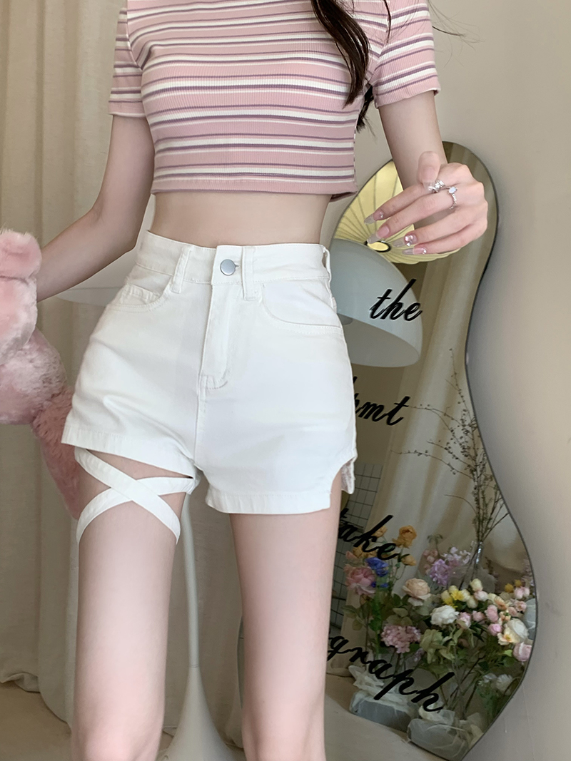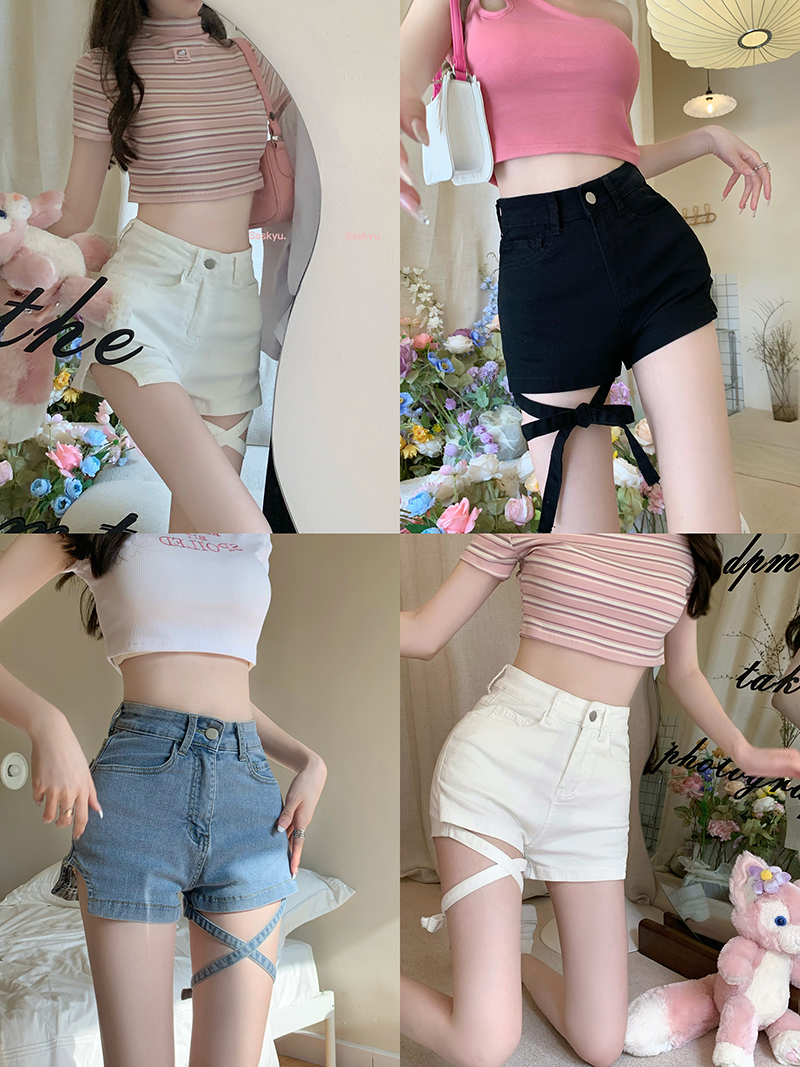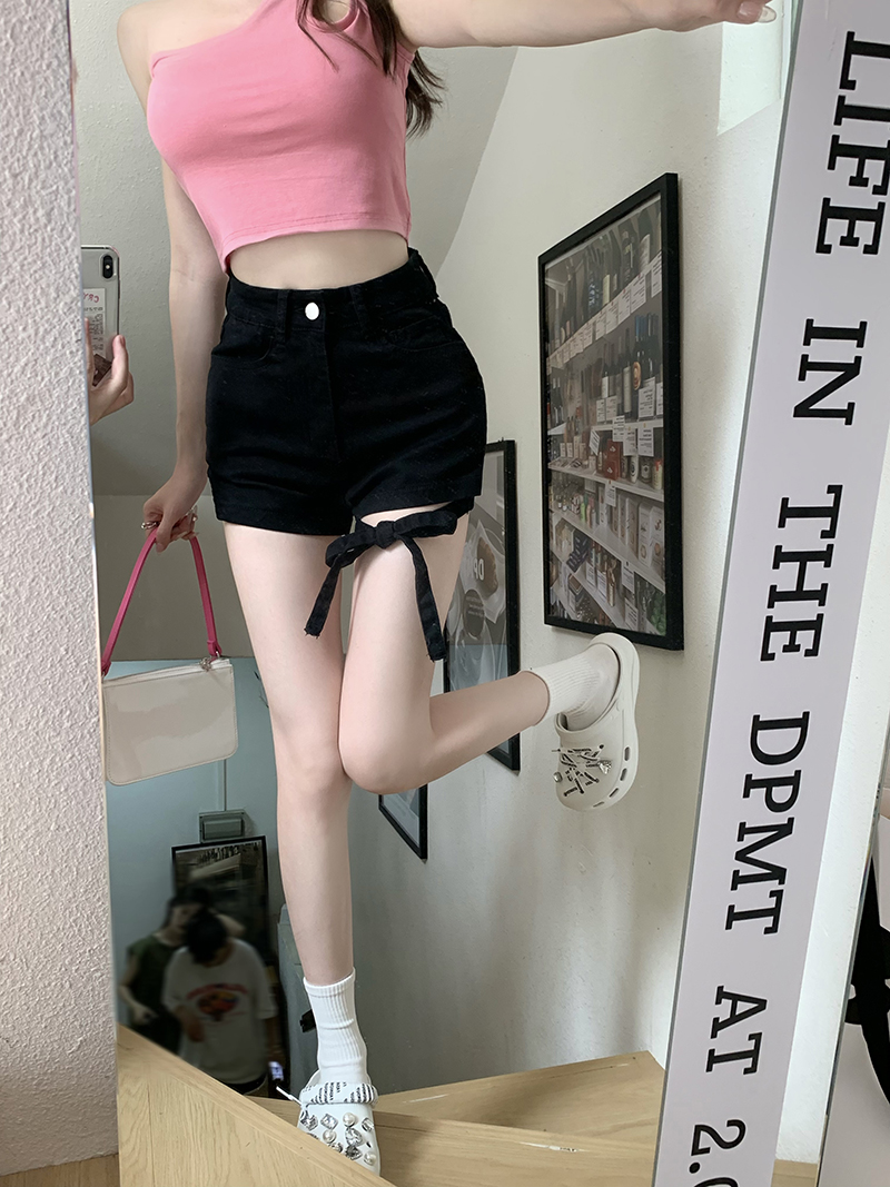Lace Up Straight Denim Shorts Women's Thin