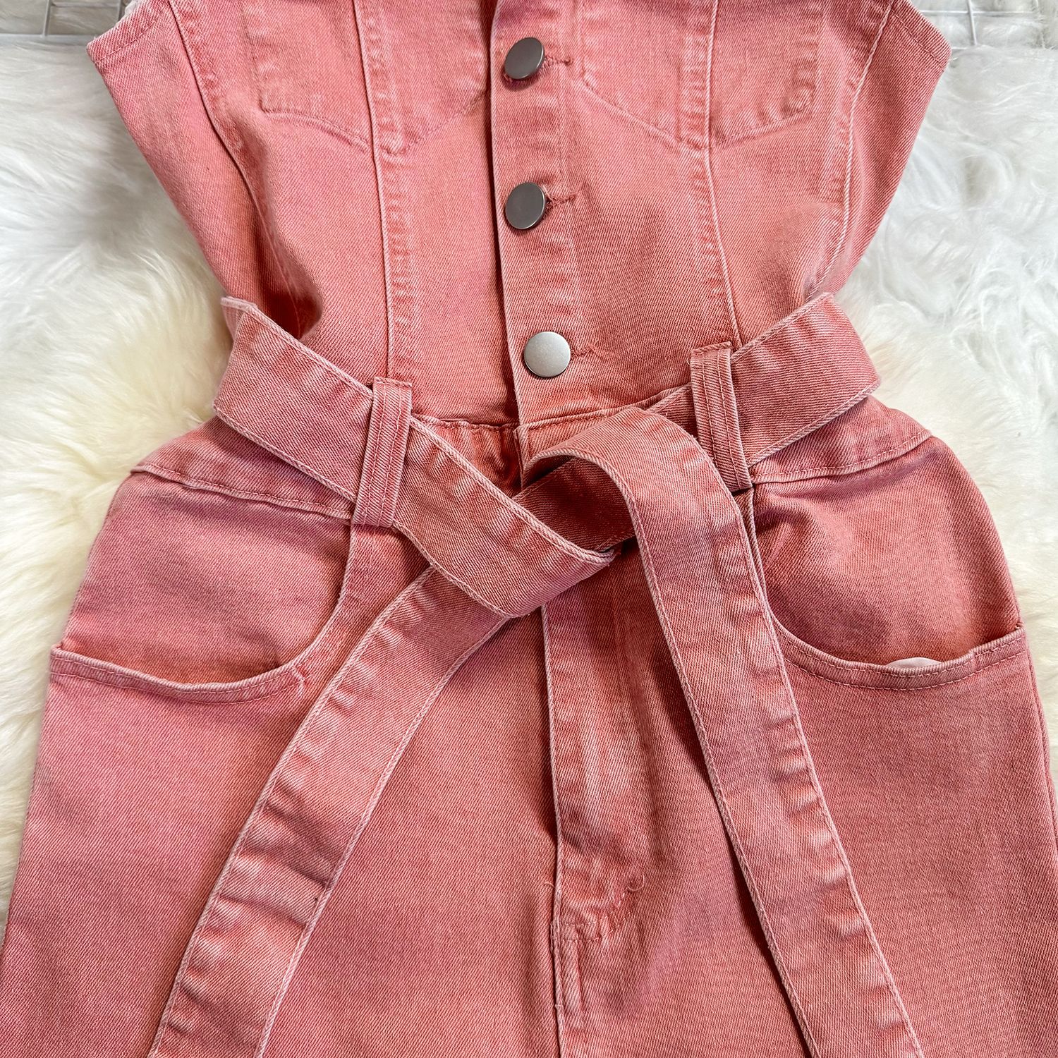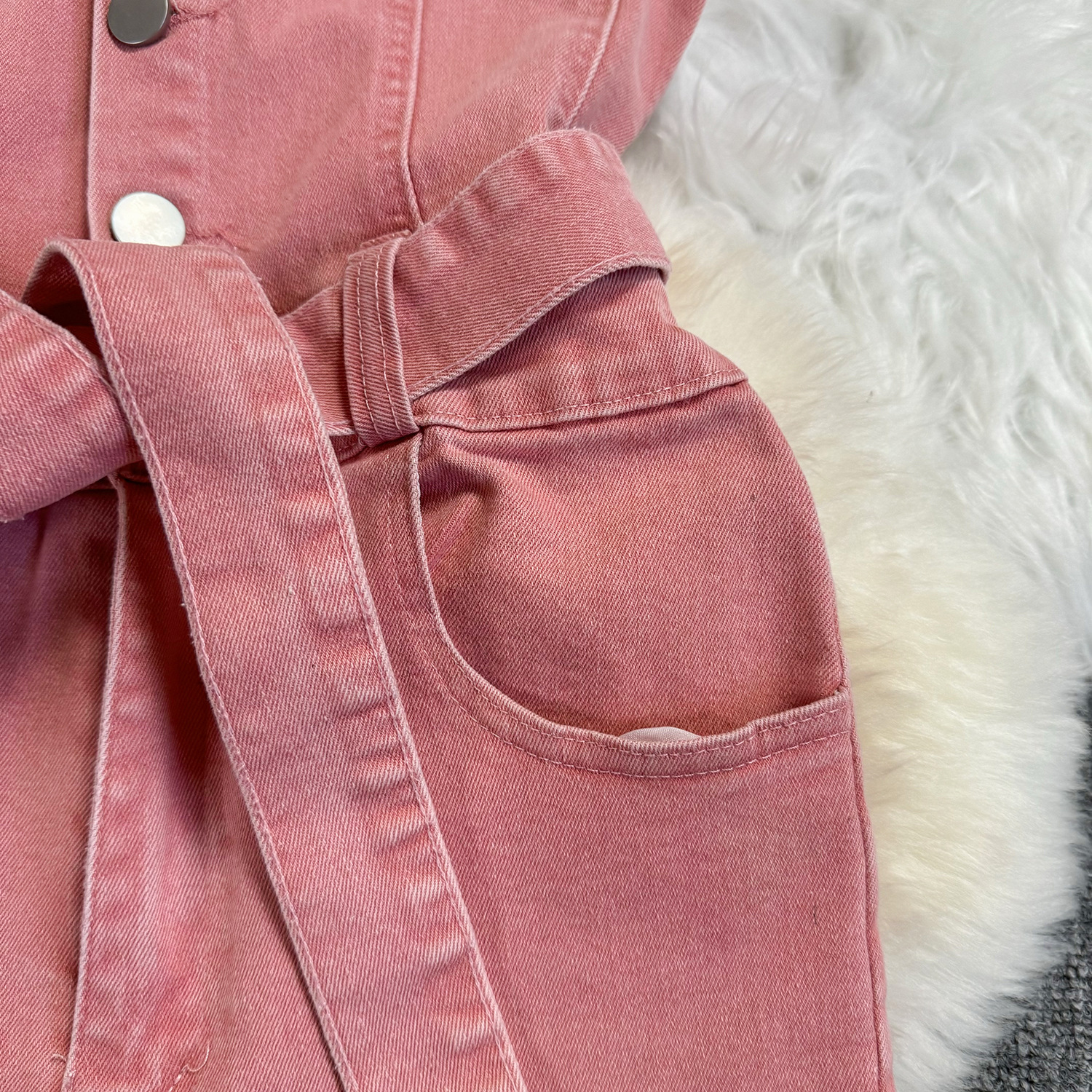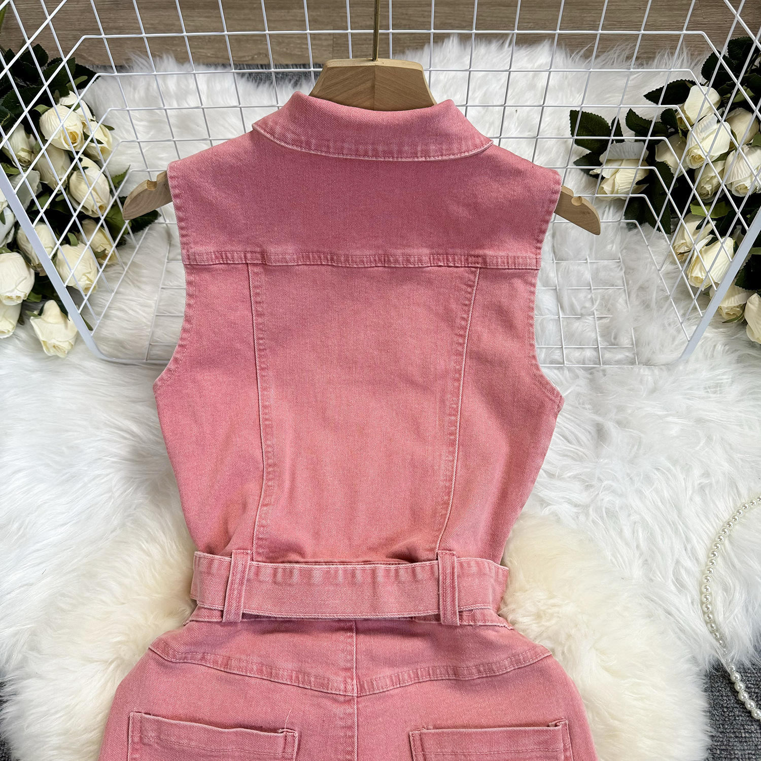 Lace-up Waist-controlled Slim Lapel Metal Buckle Jeans Jumpsuit