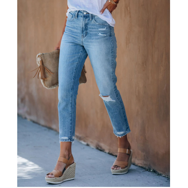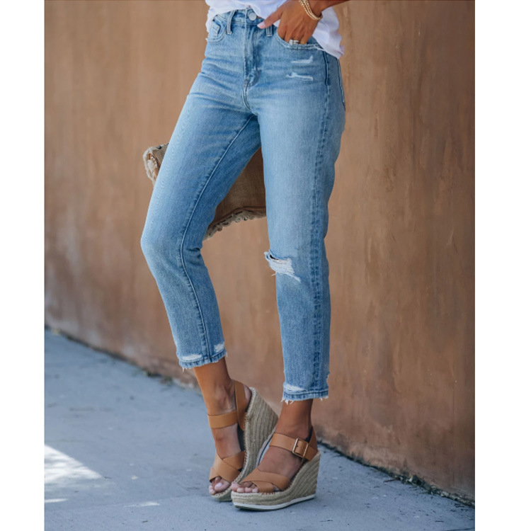 Lace-Up Women's Jeans And Pants With Ripped Holes