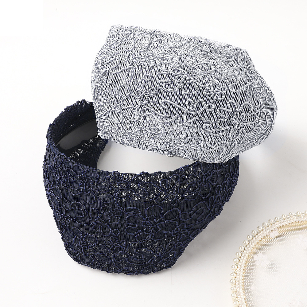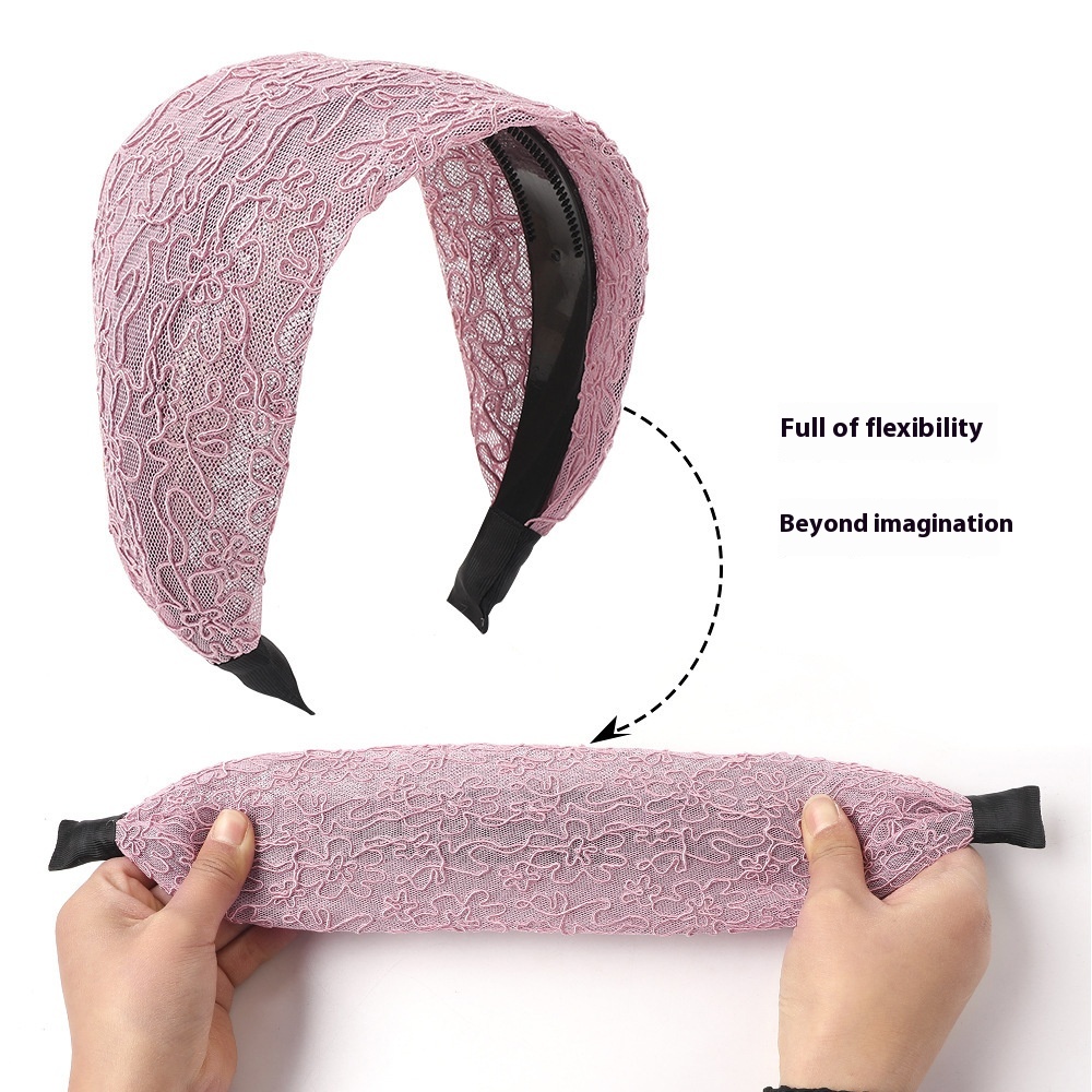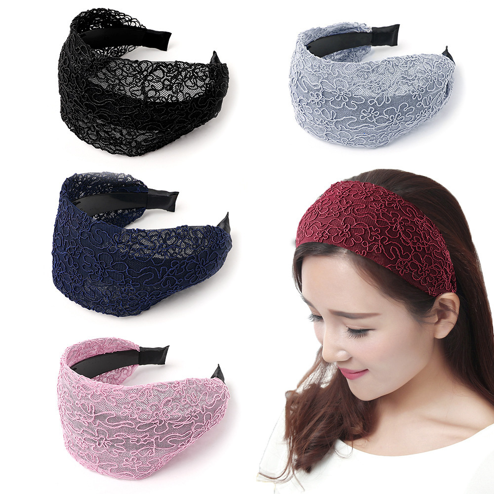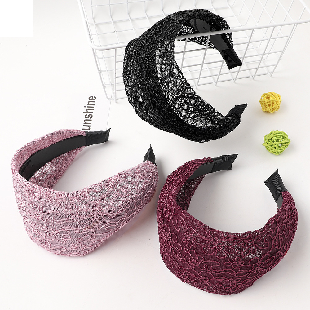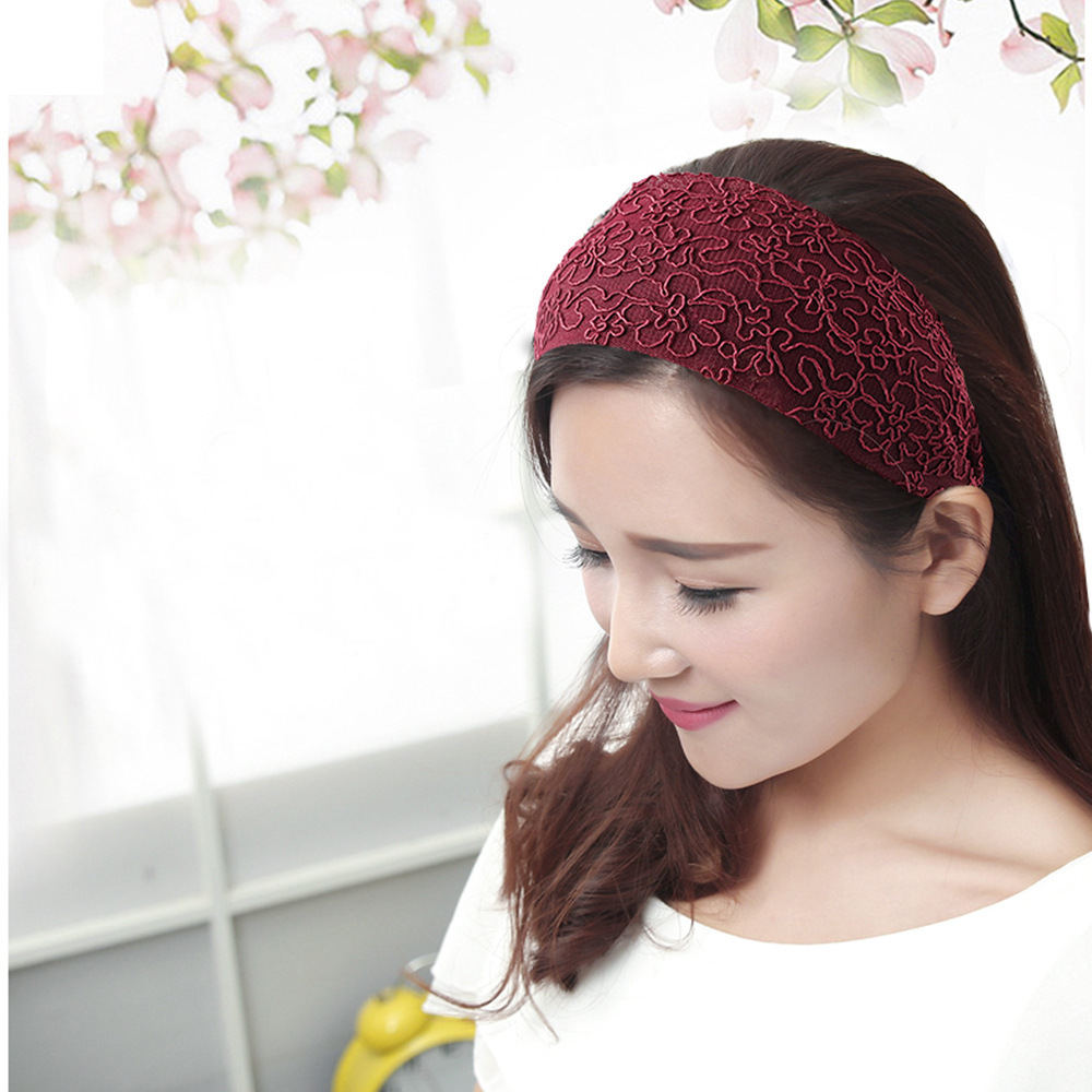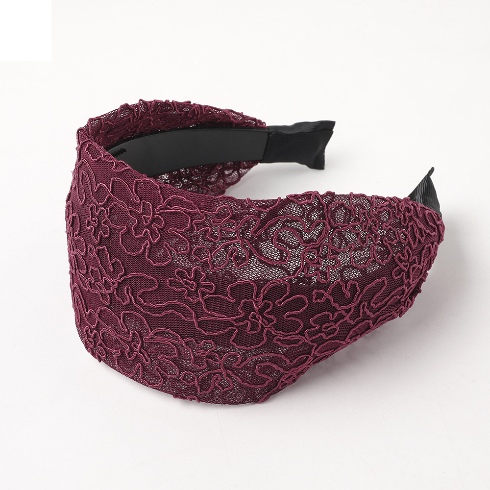 Color: yarn silk lace wide headband-black, yarn silk lace wide headband-dark blue, yarn silk lace wide headband-wine red, yarn silk lace wide headband-pink