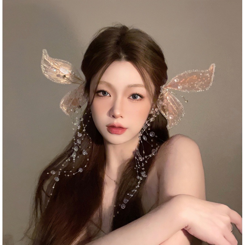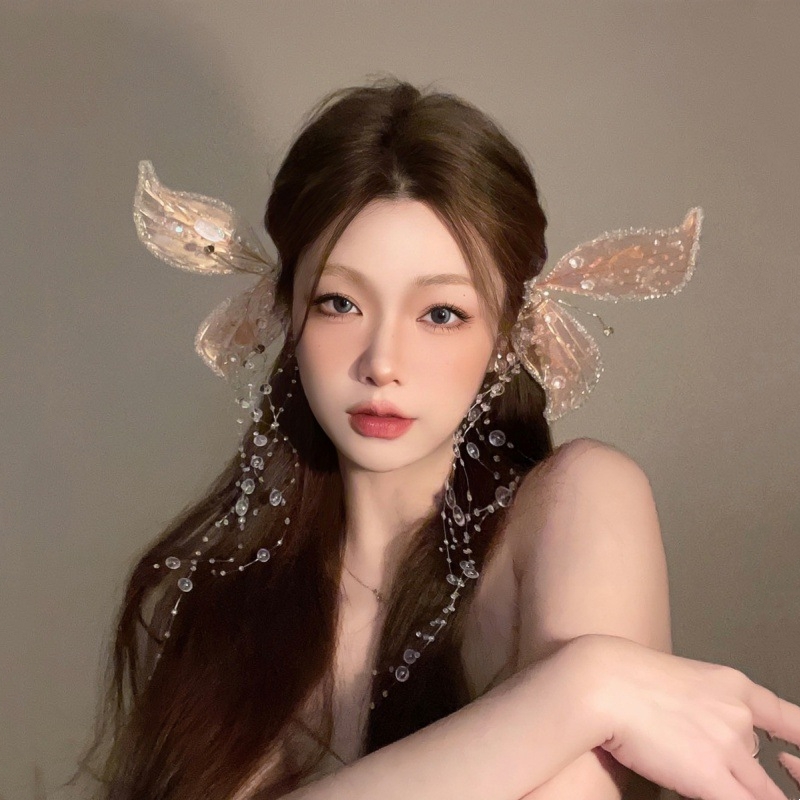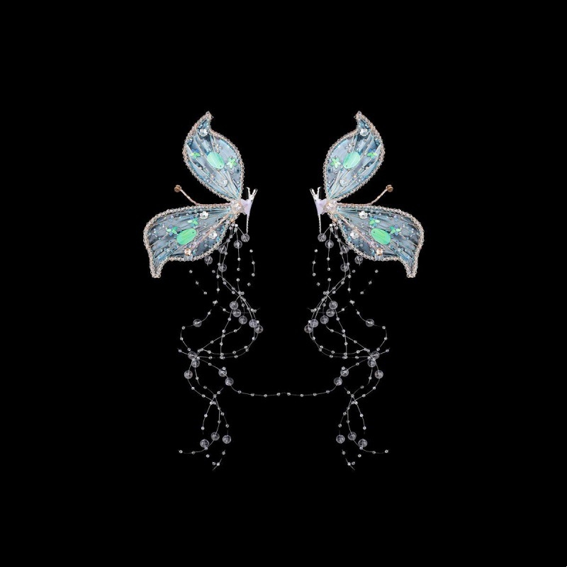 Ladies Bridal Wedding Butterfly Wings Tassel Elf Crystal Headwear