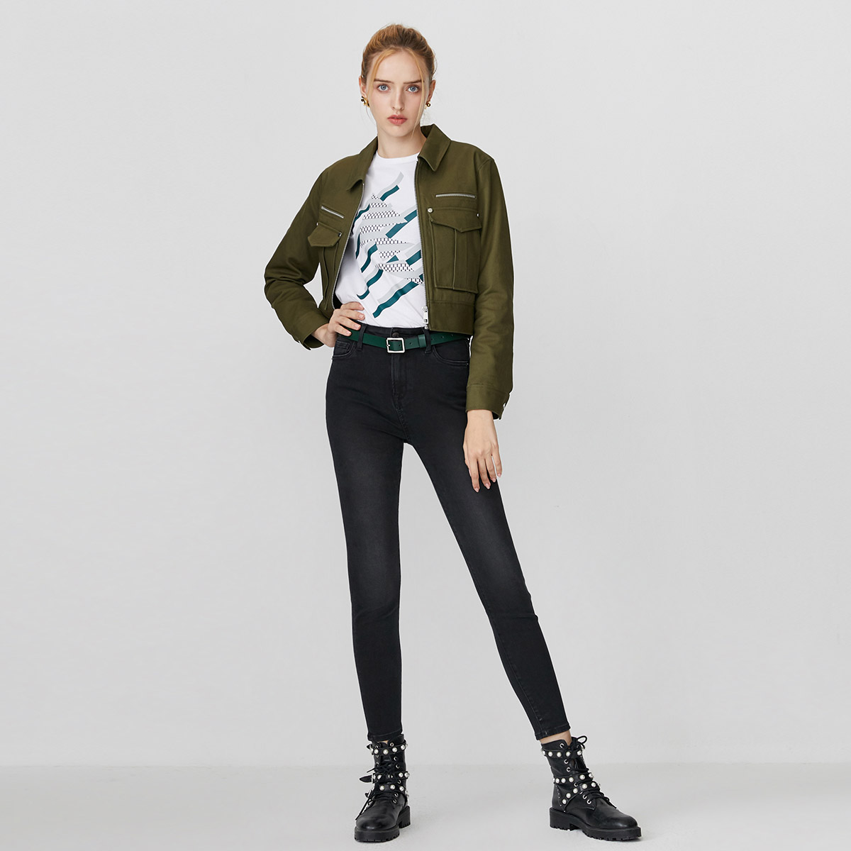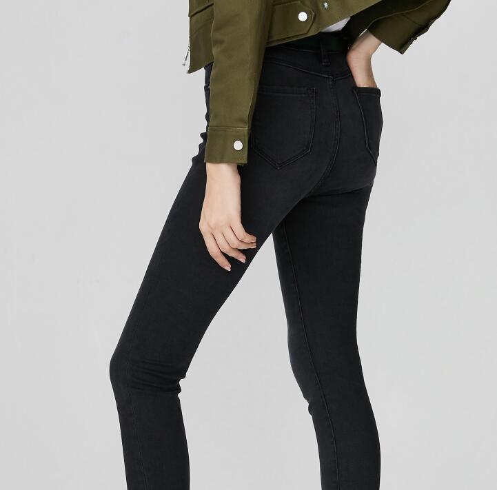 Ladies casual simple black cotton stretch skinny jeans