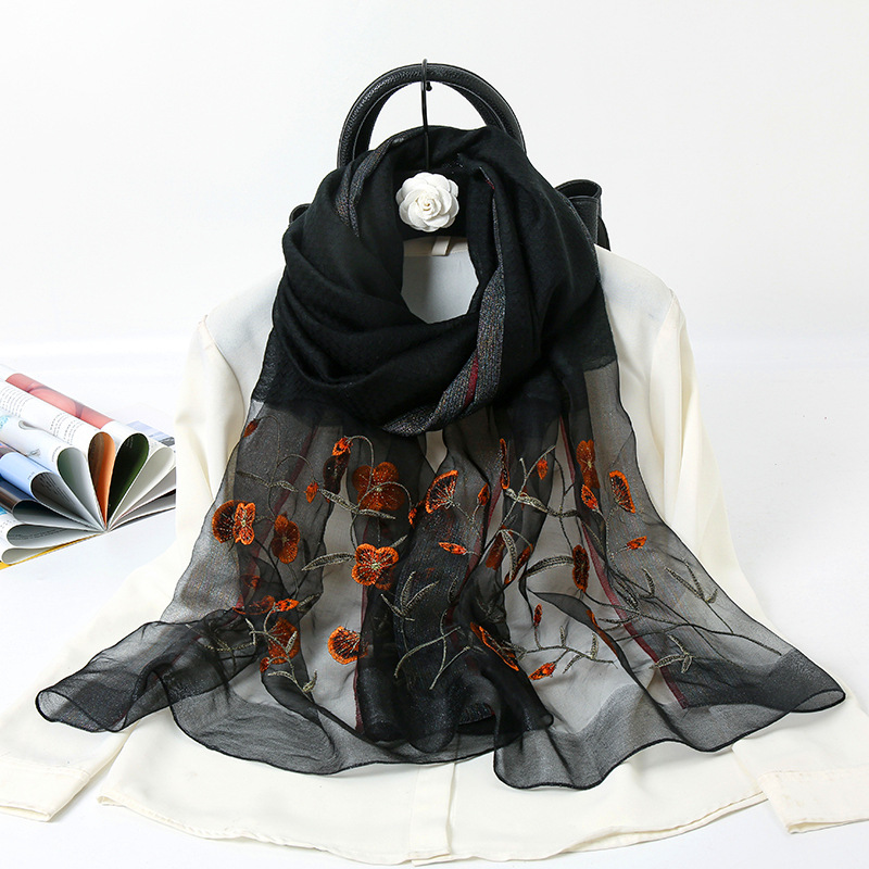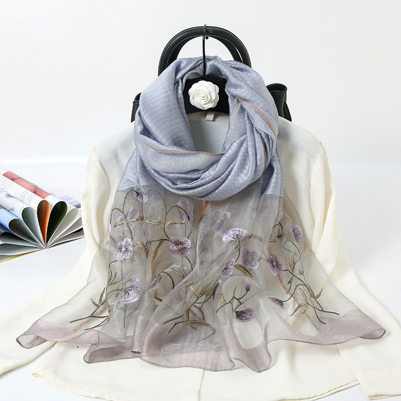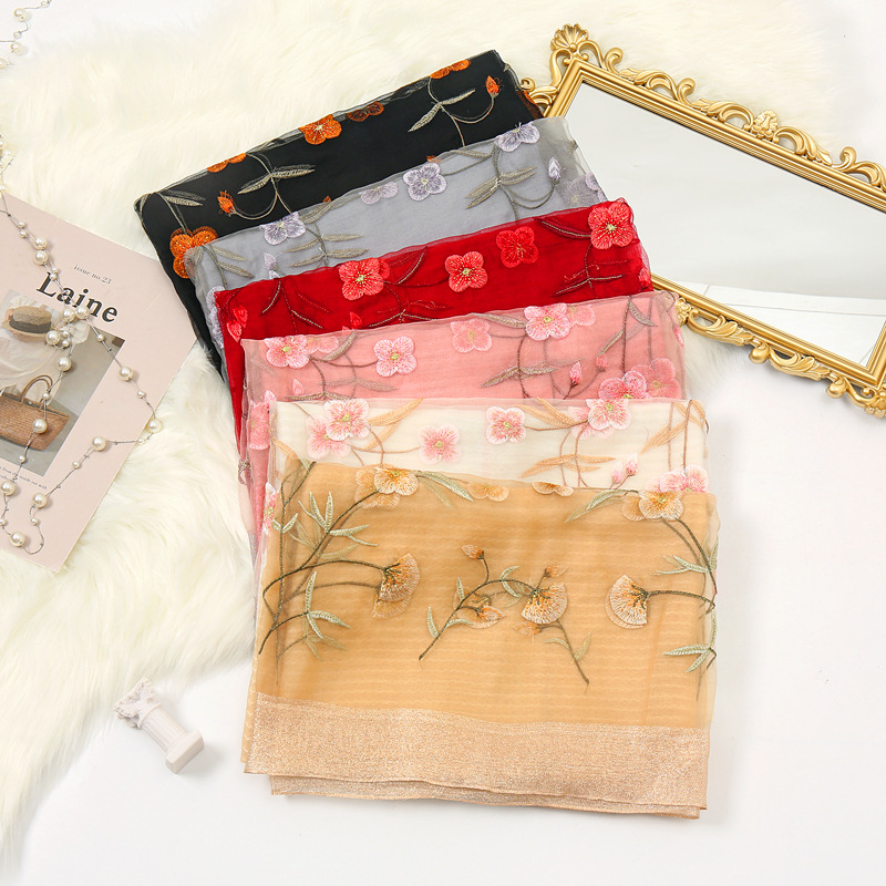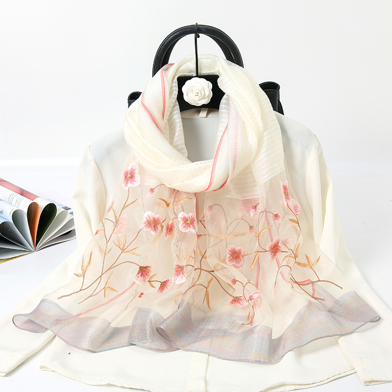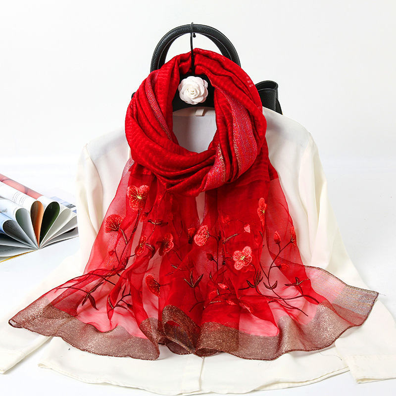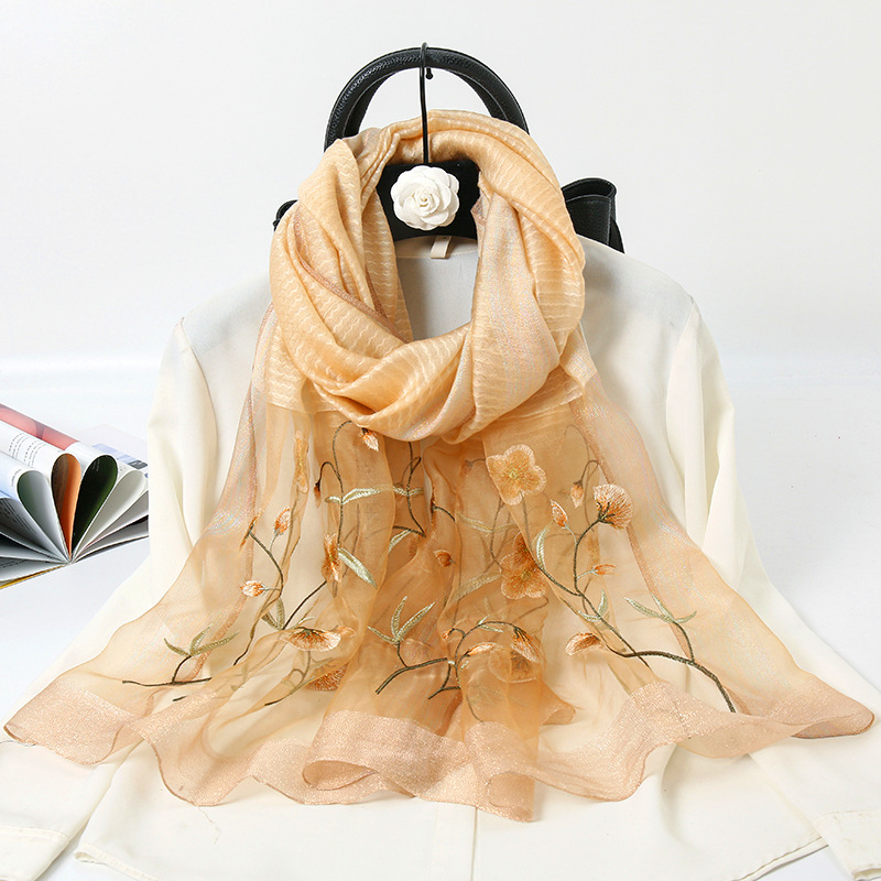 Ladies Embroidered Gold Silk Scarf Embroidered Cheongsam Shawl