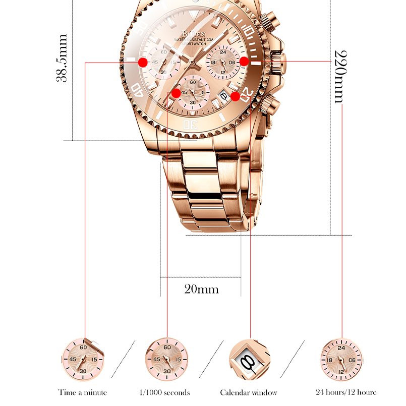 Special functions: luminous, calendar, small three-pin, 24-hour indication