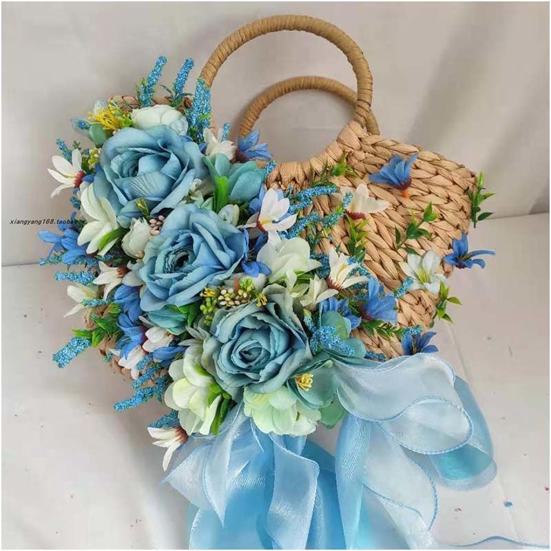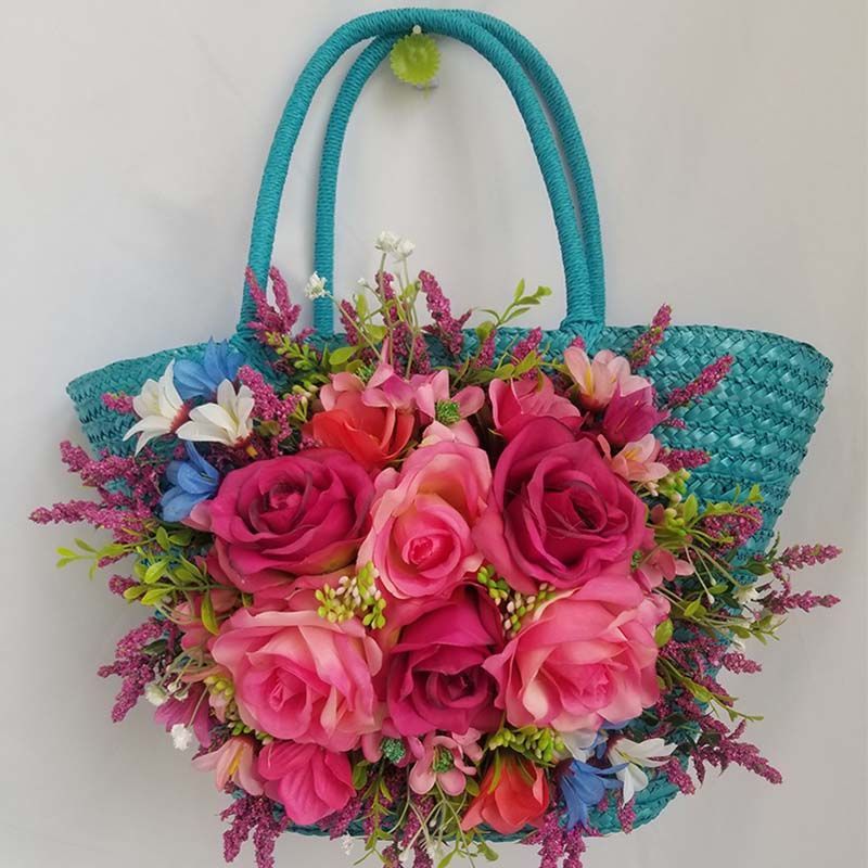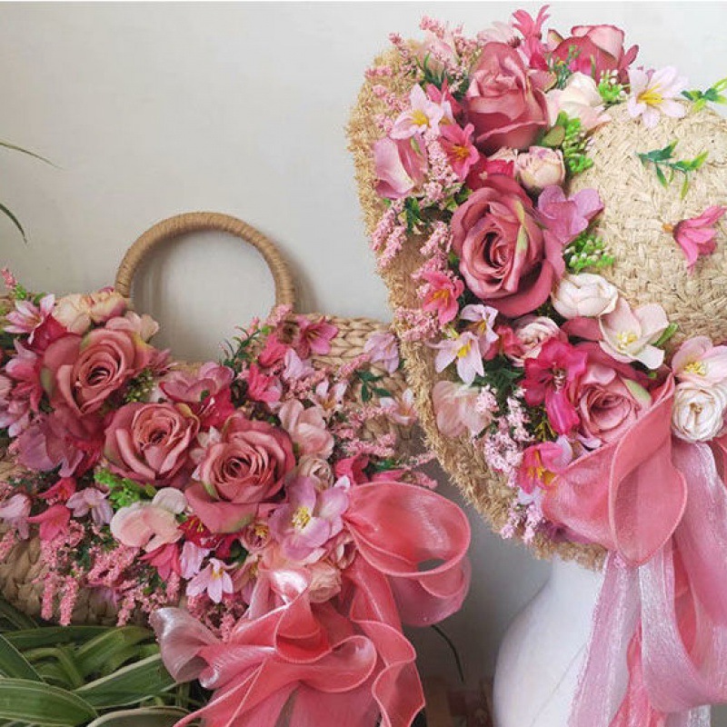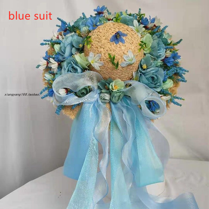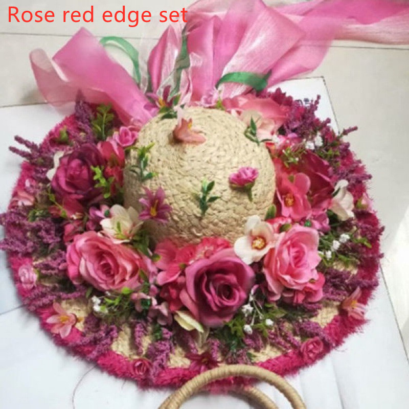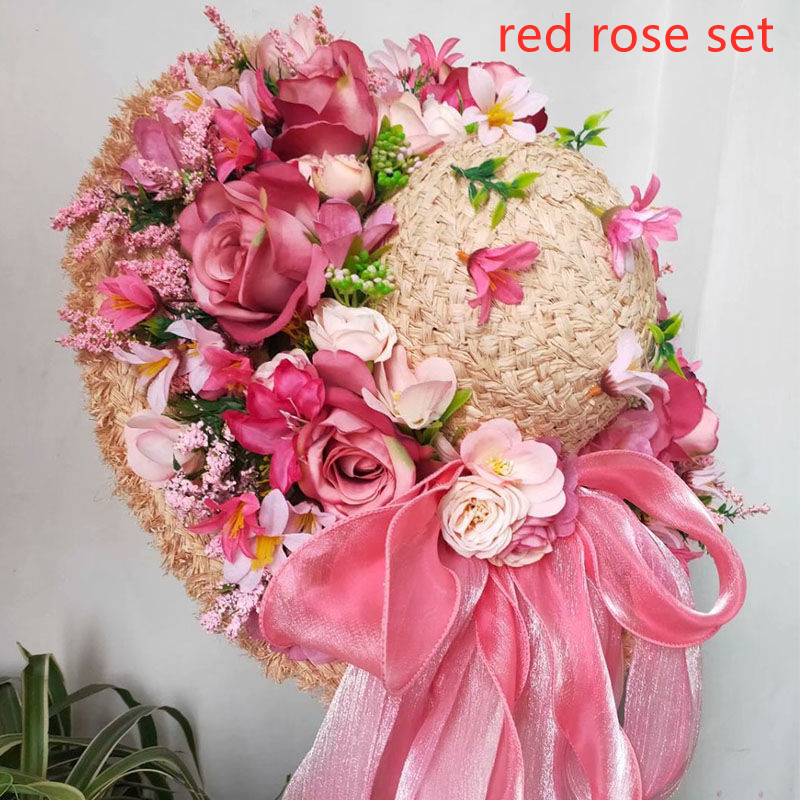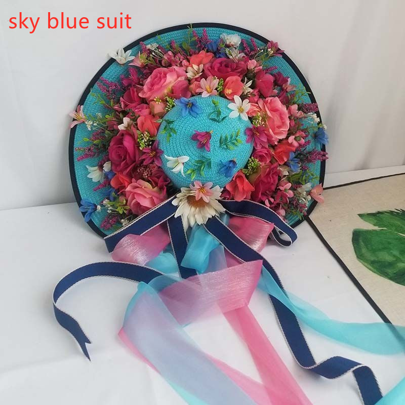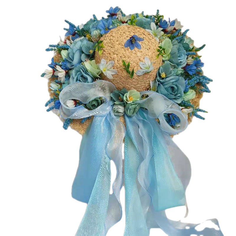 I style: sky blue rose red rose heavy handmade straw hat