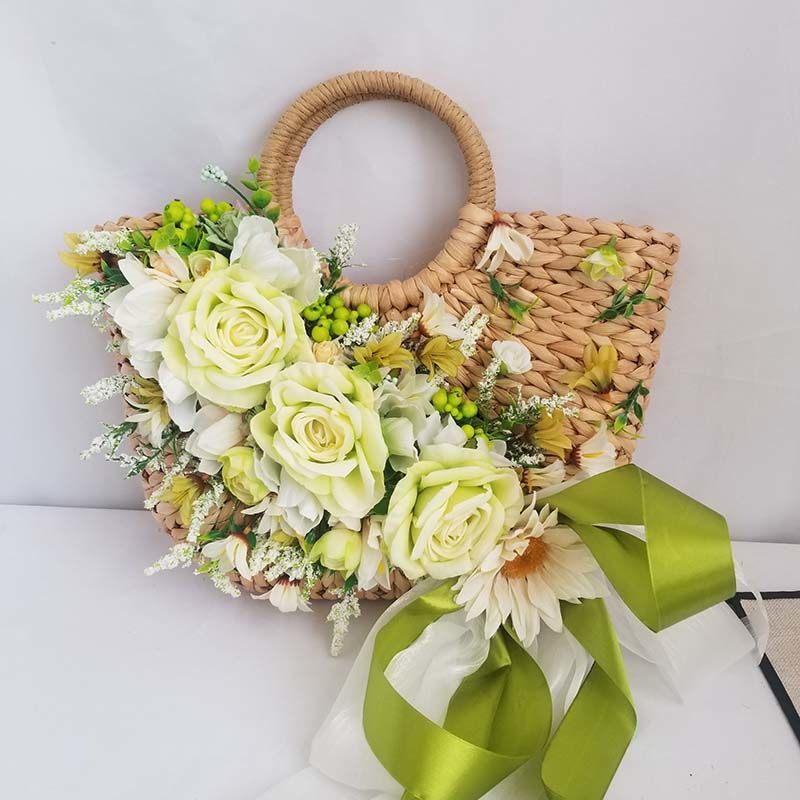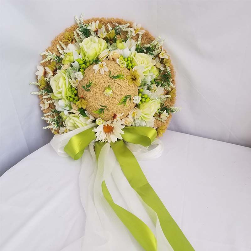 O style: Herbal color heavy handmade fresh green rose straw hat