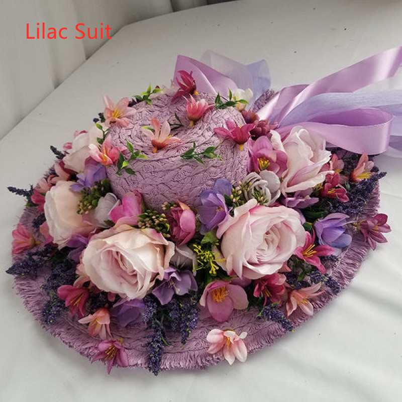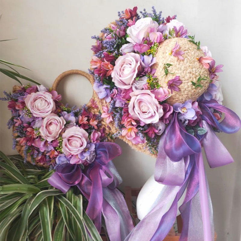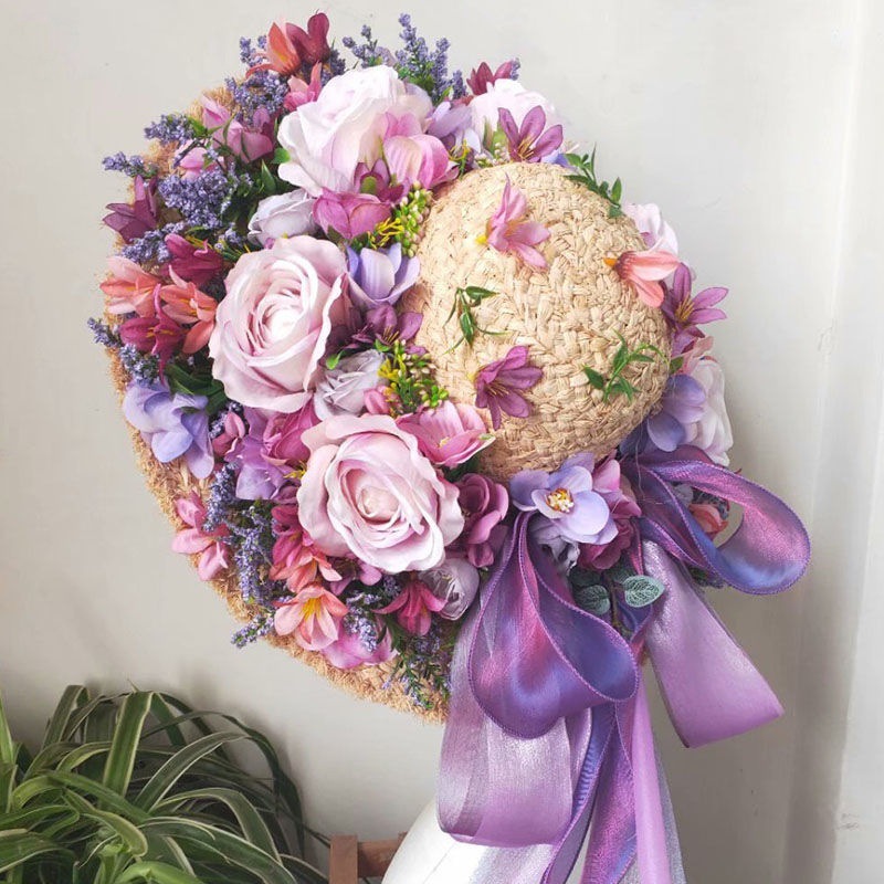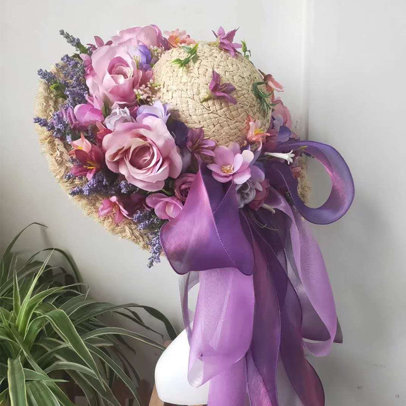 Q style: lavender lara grass heavy handmade garland straw hat