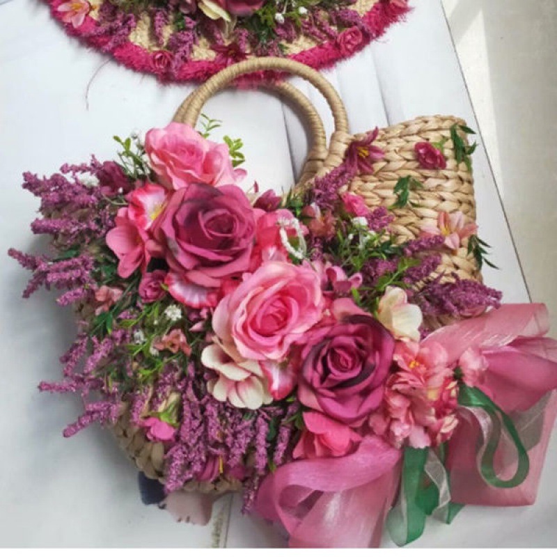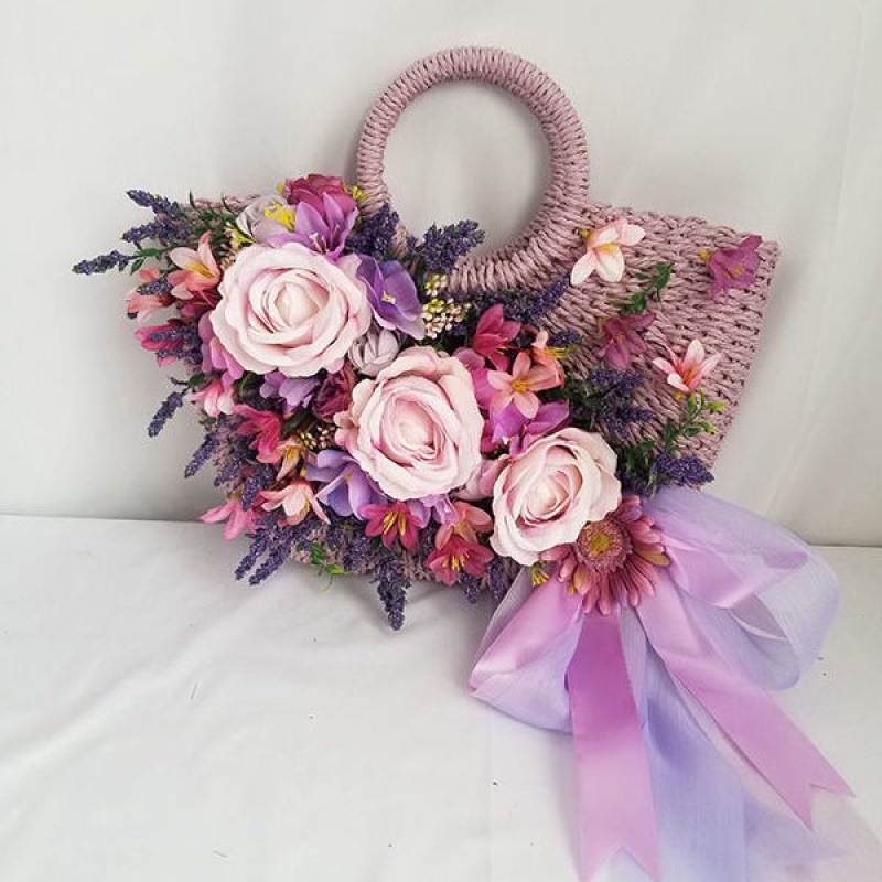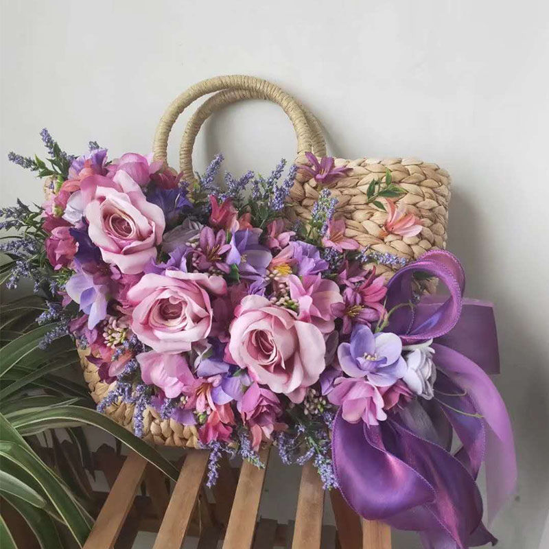 B style: a natural color bag with purple roses of the same style