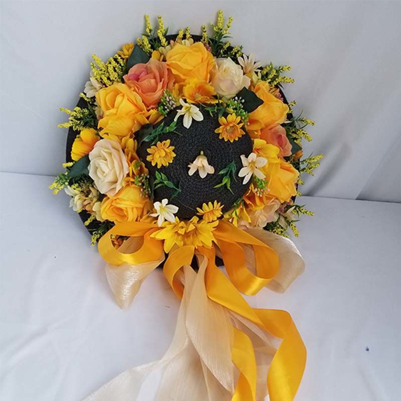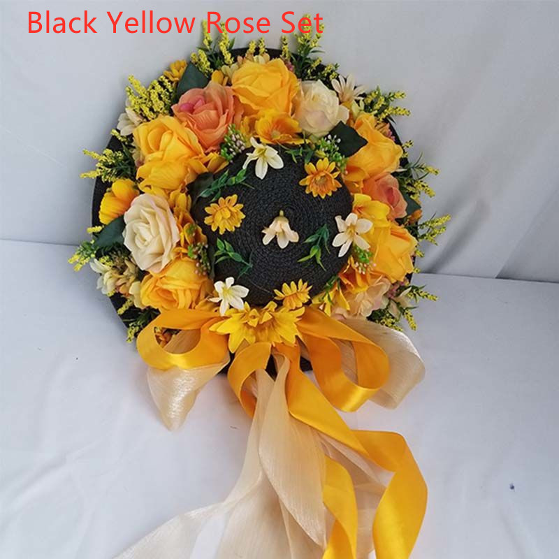 Style M: Black Yellow Rose Heavy Handmade Straw Hat