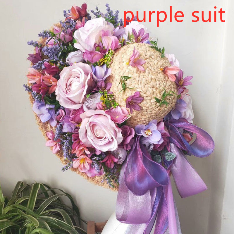 Style A: Natural Cap Purple Rose Wreath Ribbon Single Cap