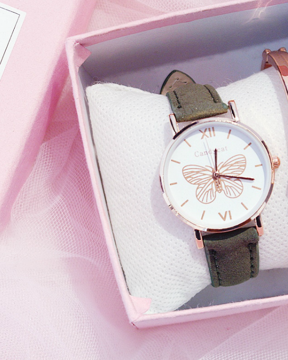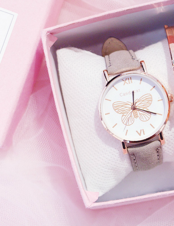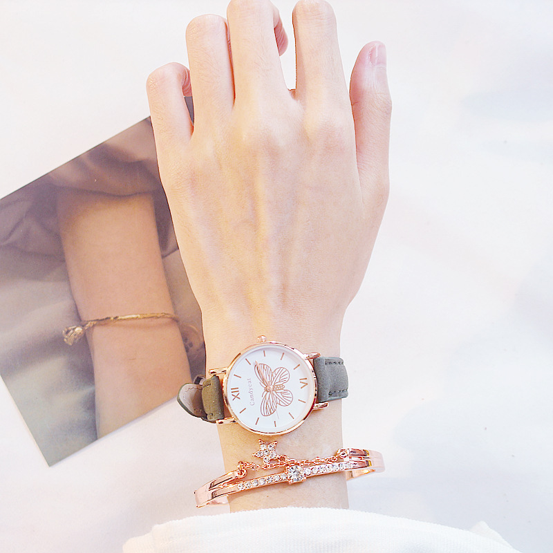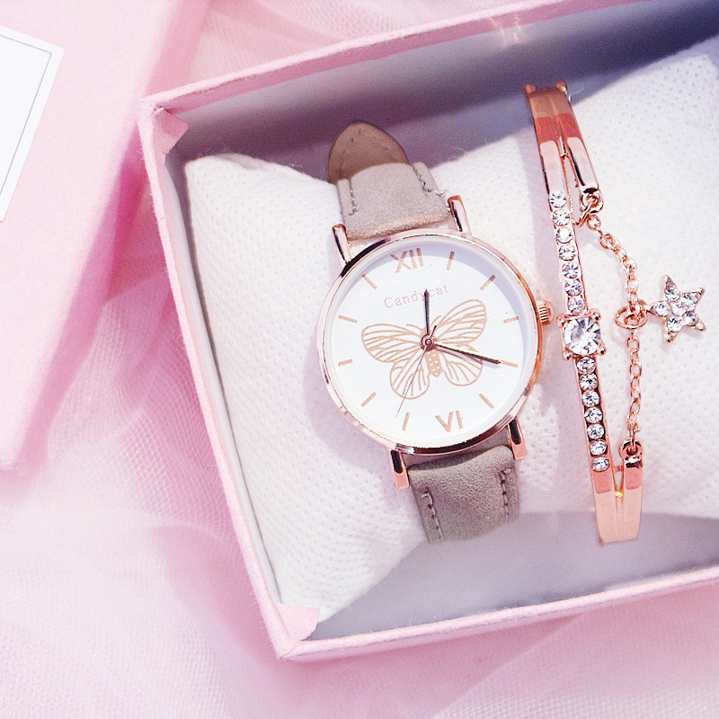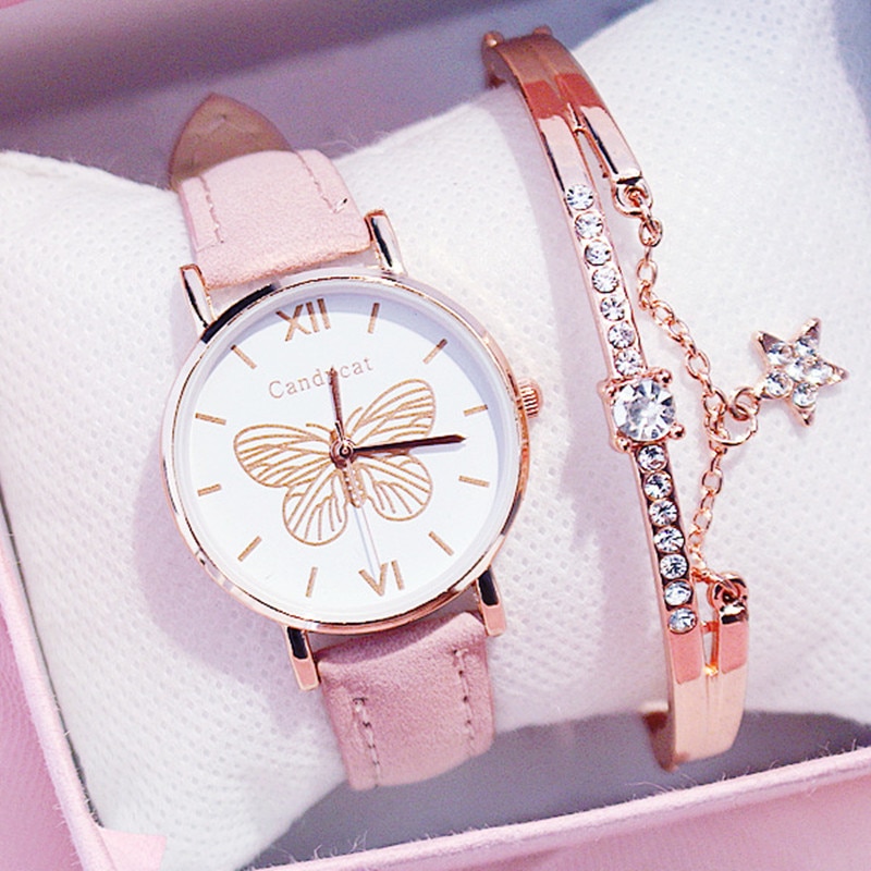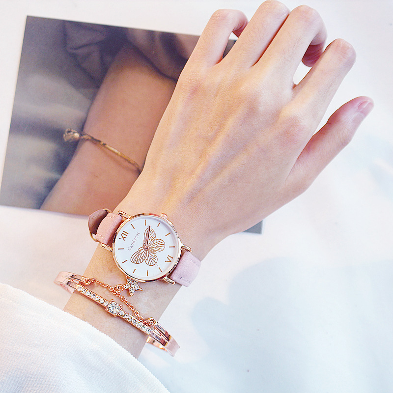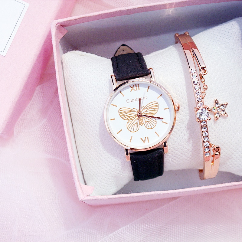 Name: Lady's fashion trend wild butterfly dial belt quartz watch + star bracelet (2PCS/Set)
