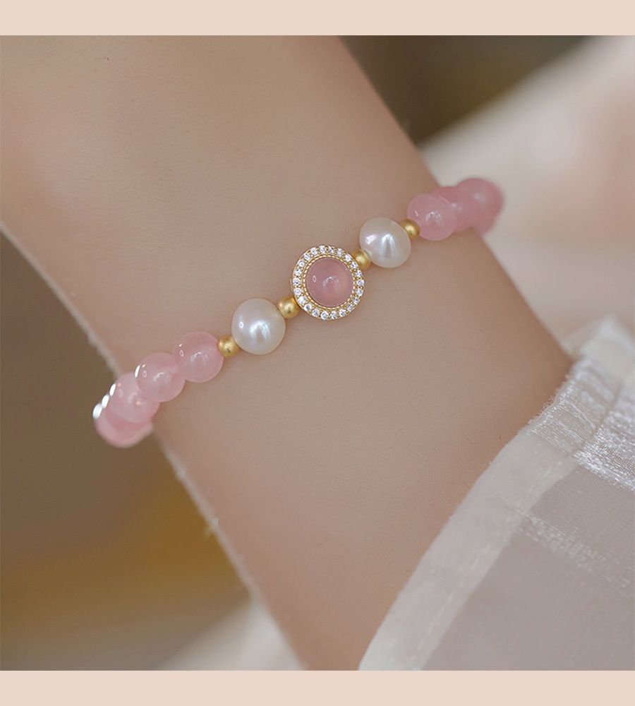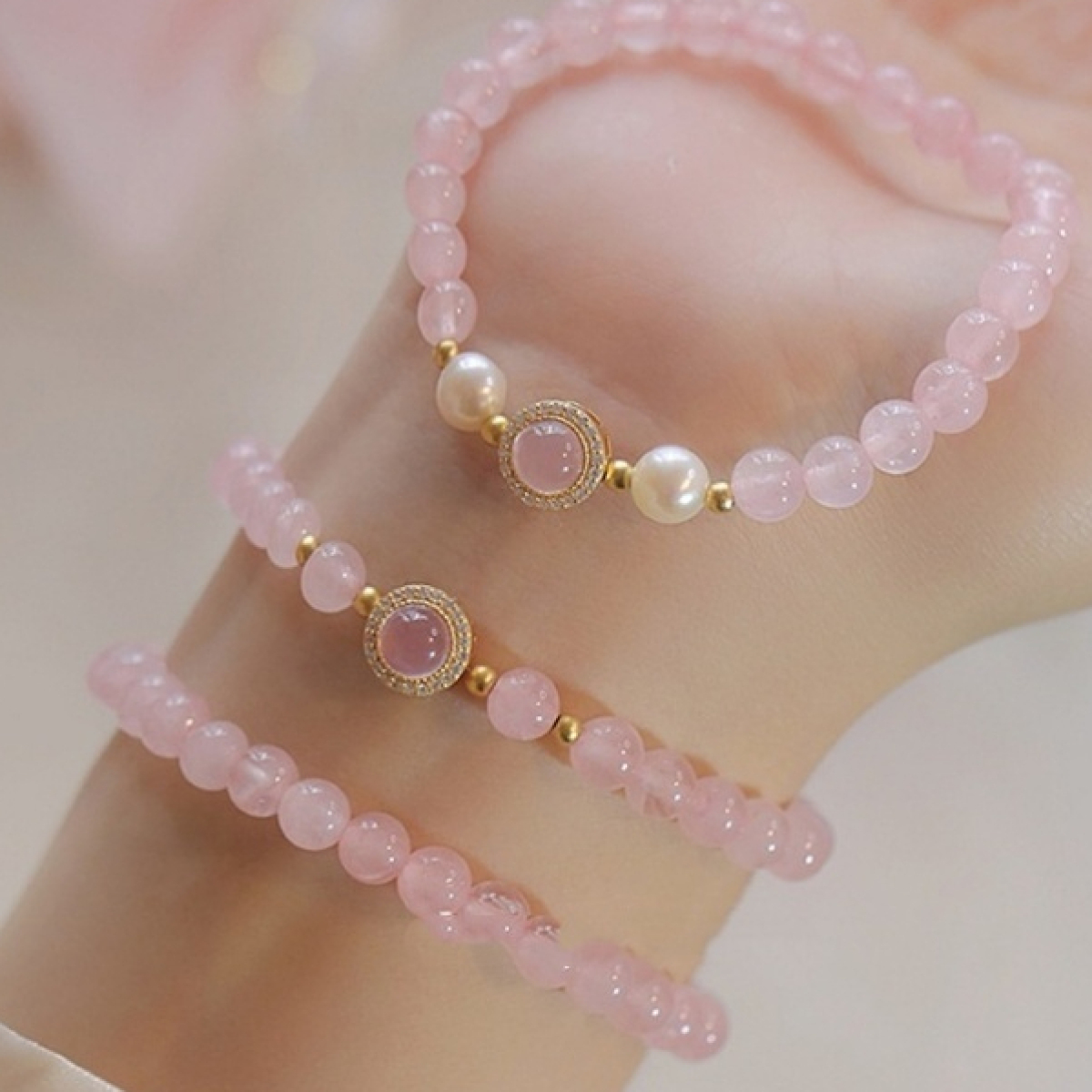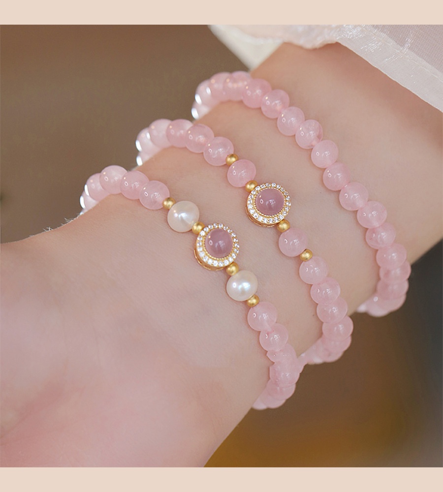 Color: Taoji pink crystal pearl bracelet, Taoji pink crystal 4 Golden Balls bracelet, Taoji quansu pink crystal bracelet
