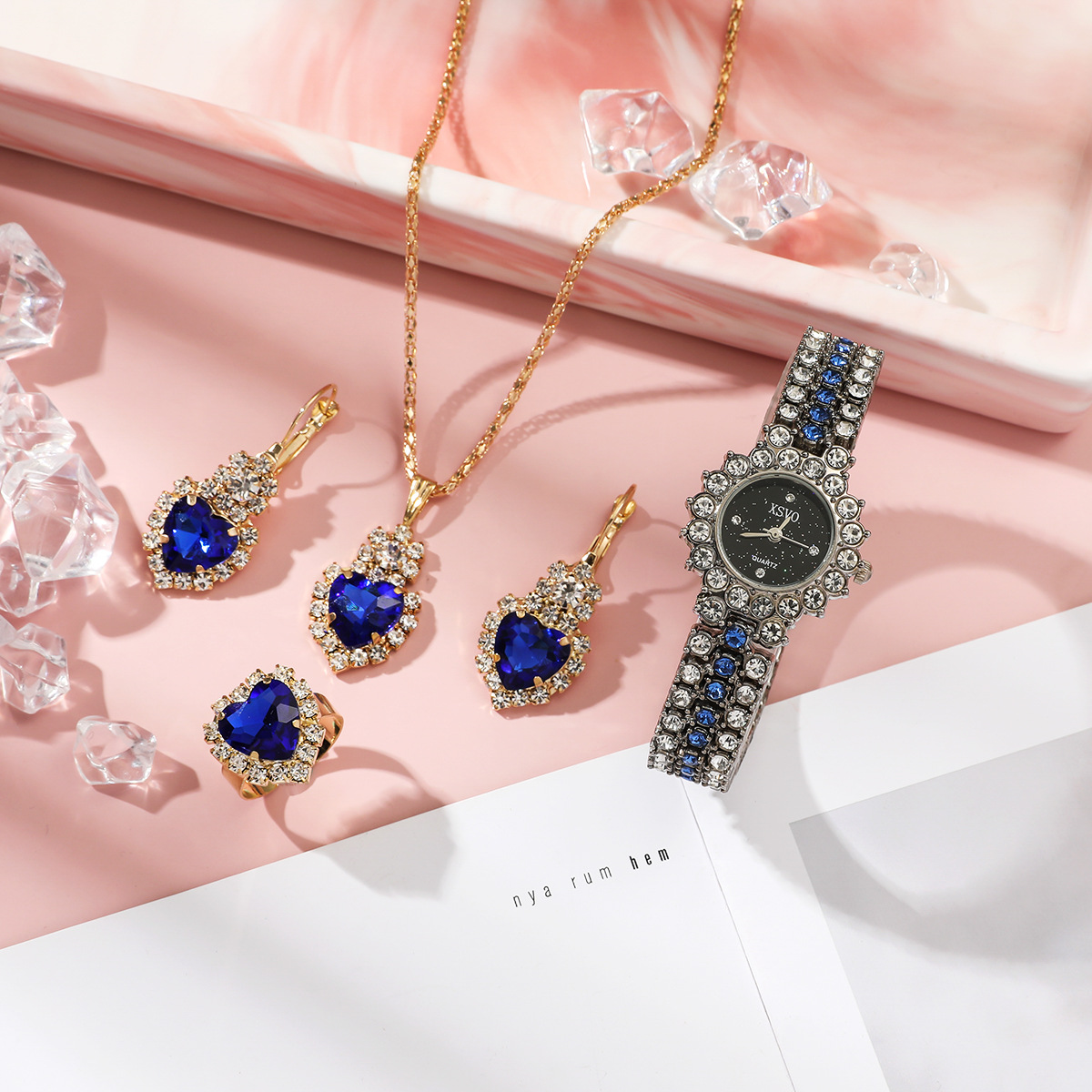 Watch X1 + earrings X1pair + necklace X1 + ring X1