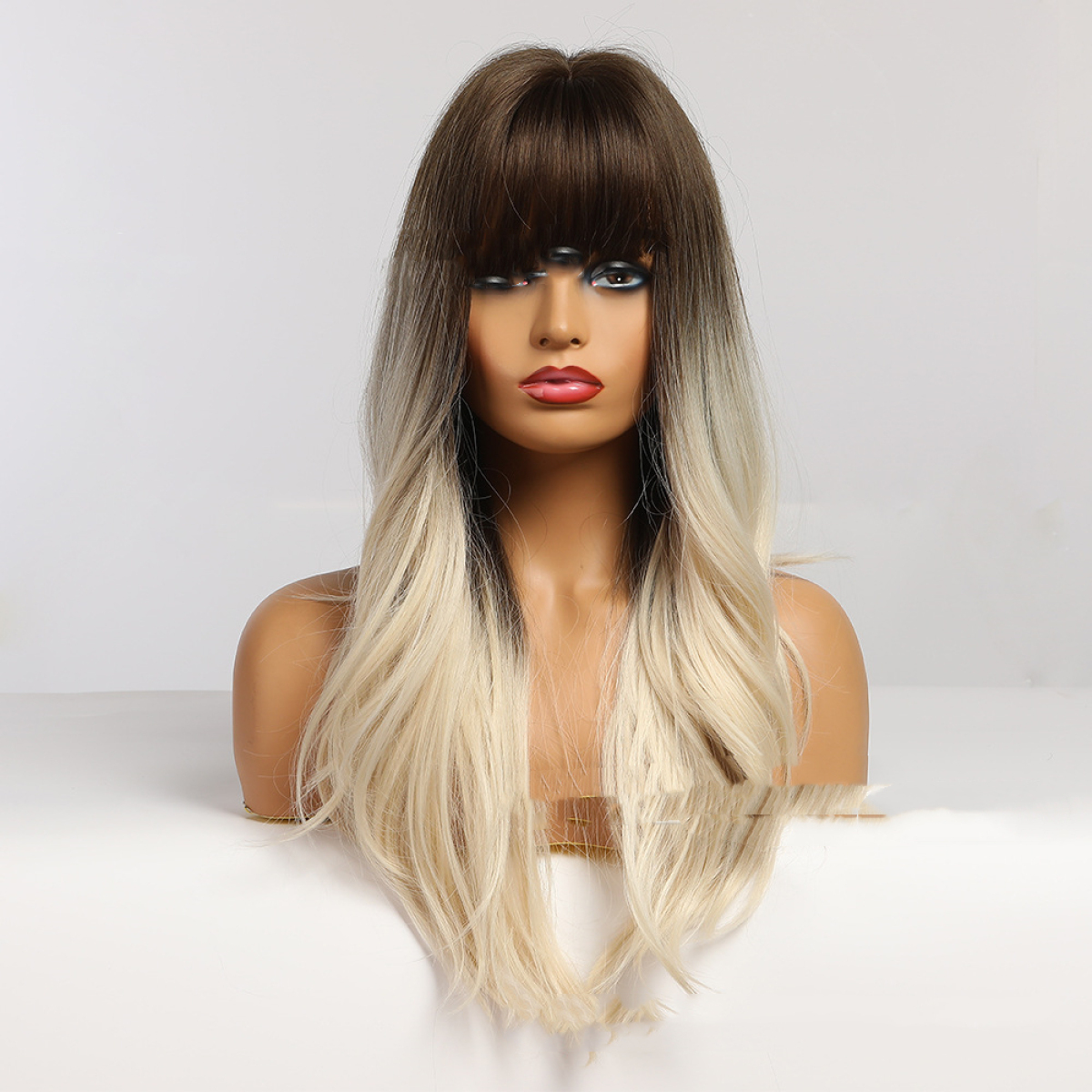 Wig hairstyle: long straight hair with bangs