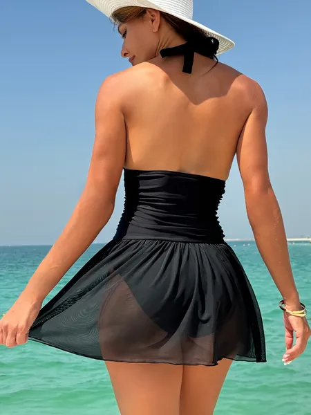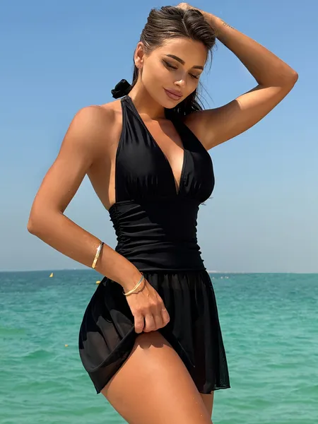Ladies' One-piece Black Backless Swimsuit, Quick Drying And Elegant