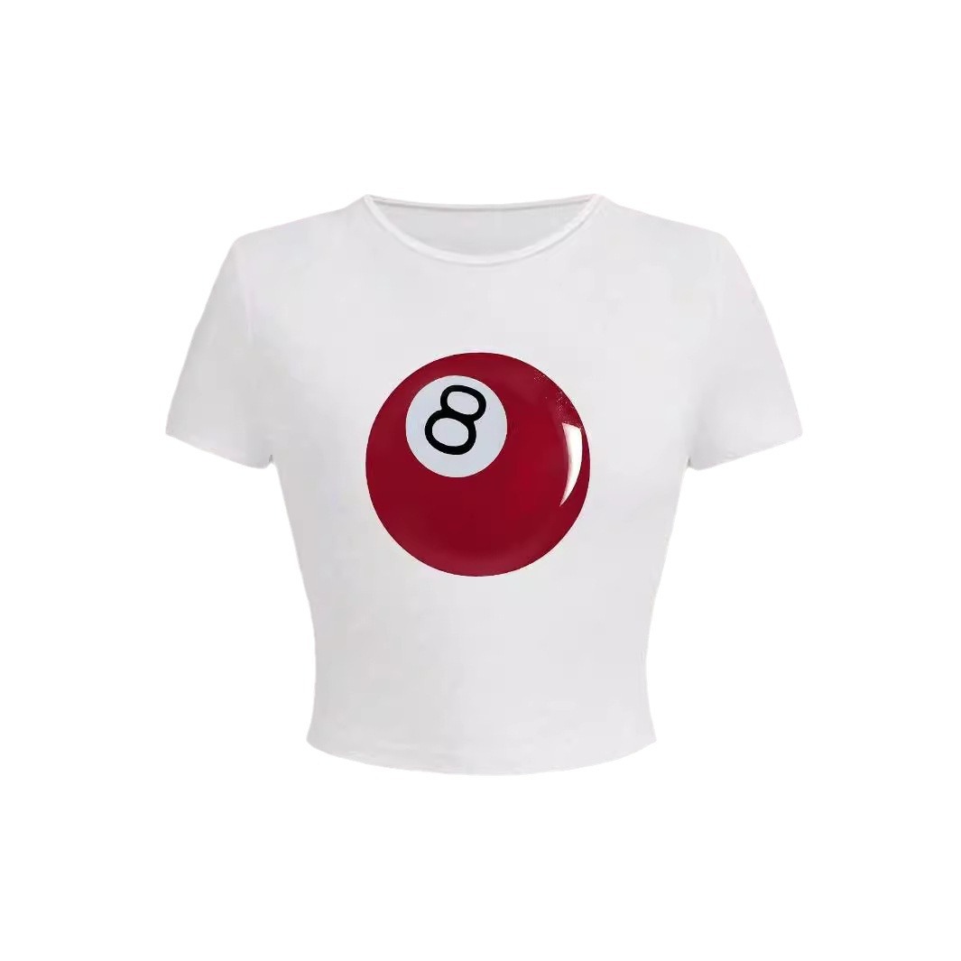 Ladies' Round Neck Casual Size 8 Ball Print Short Sleeved Shirt