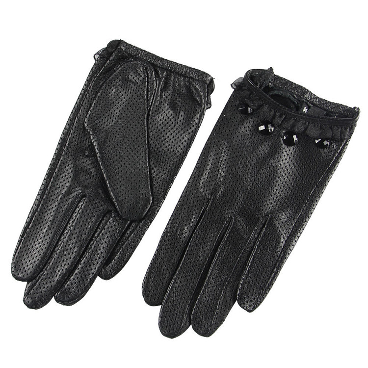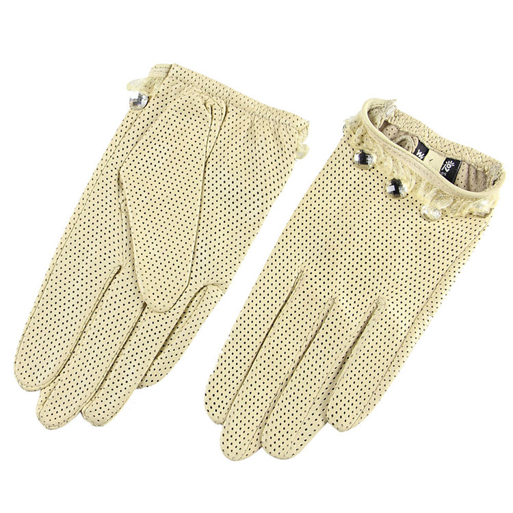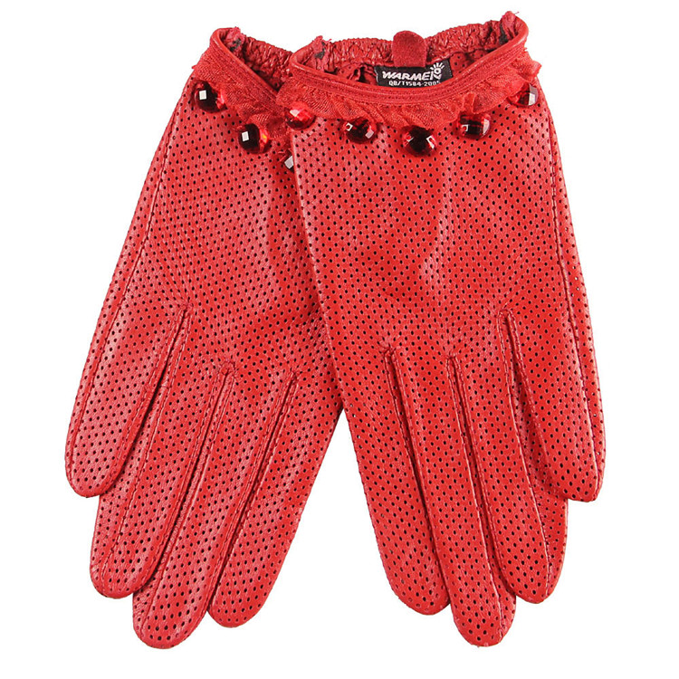 Ladies Sheepskin Perforated Breathable Single Leather Touch Screen Full Finger Gloves