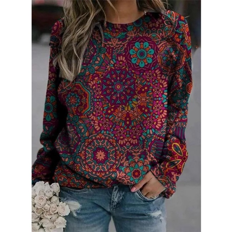 Ladies' Turtleneck Printed Round Neck Long Sleeve Sweatshirt