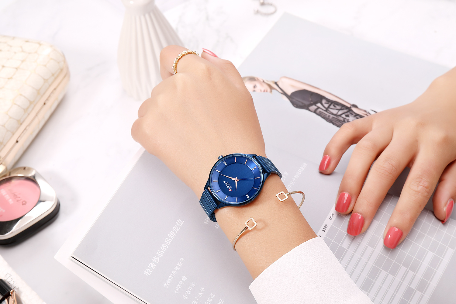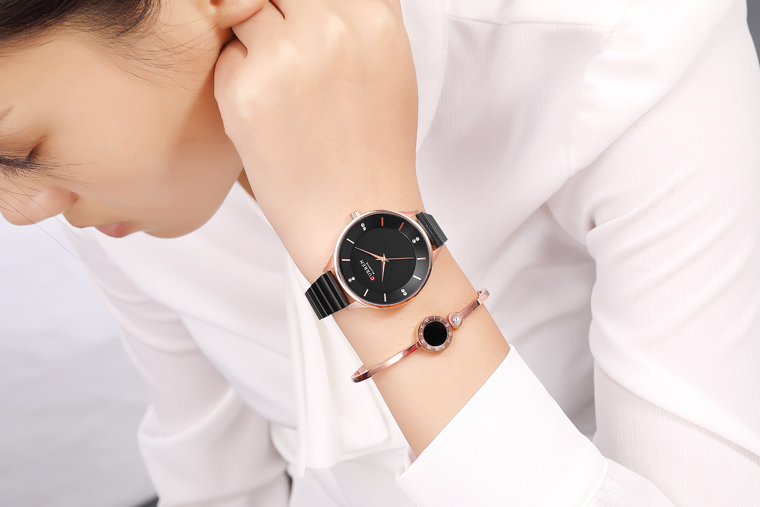 Rose Shell White Silver Steel Belt, Karion 9041b Rose Shell Black Steel Belt