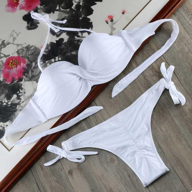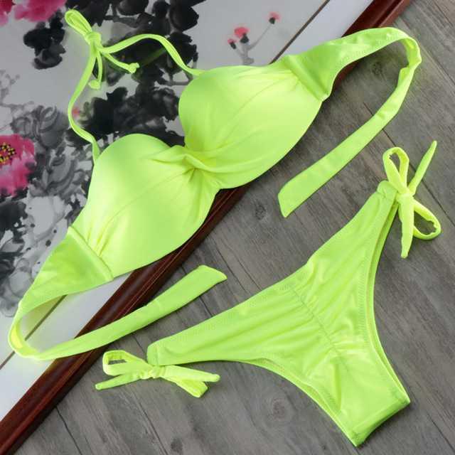 ●Detailing: push up bikini set cross swimwear, halter design ties neck, back and
