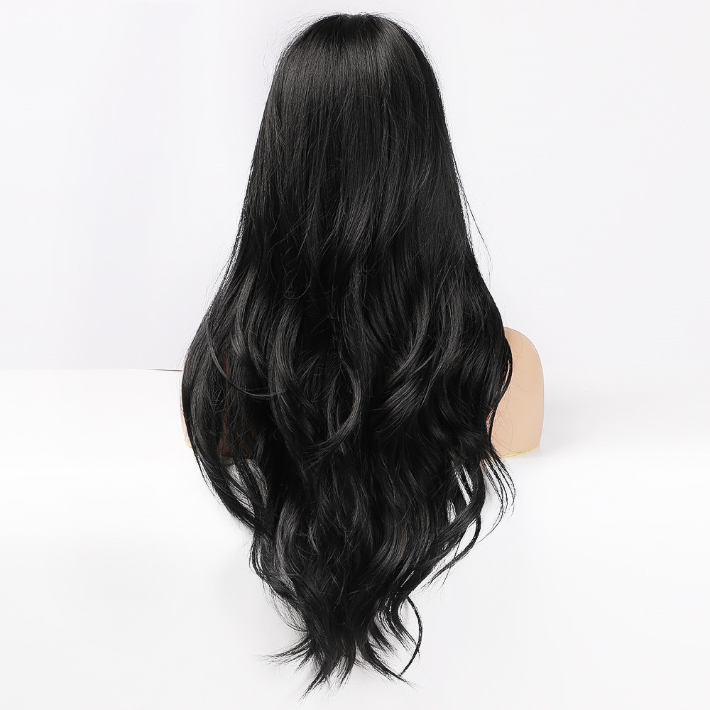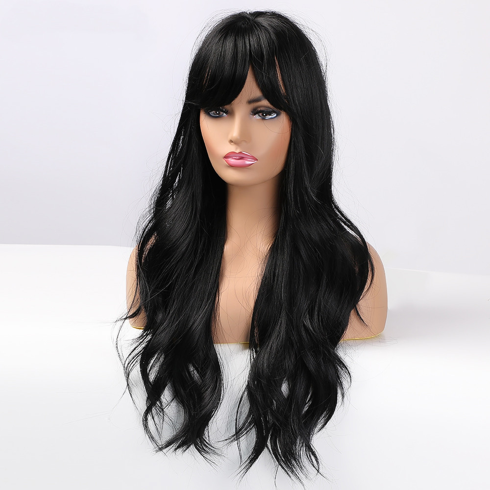 Ladies Wig Brown Black Long Curly Bangs