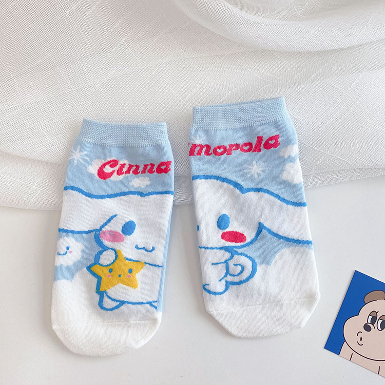 Color classification: sky blue bottom laurel dog, three-dimensional ear section, laurel dog-elastic band mouth section, AB socks section, blue sky and white cloud section, three flower flowers section