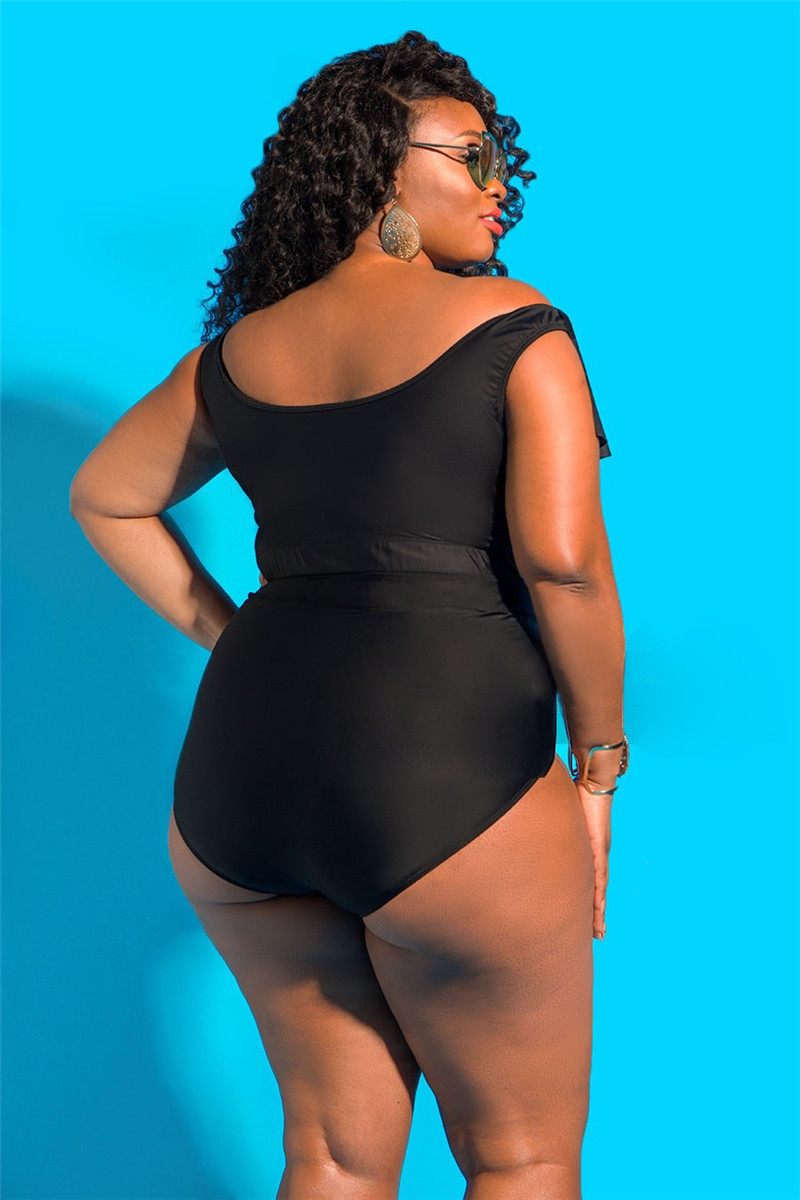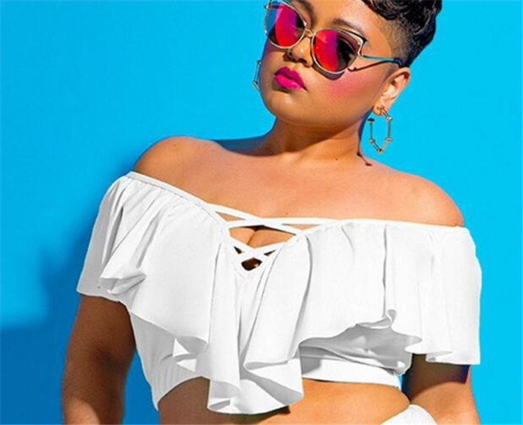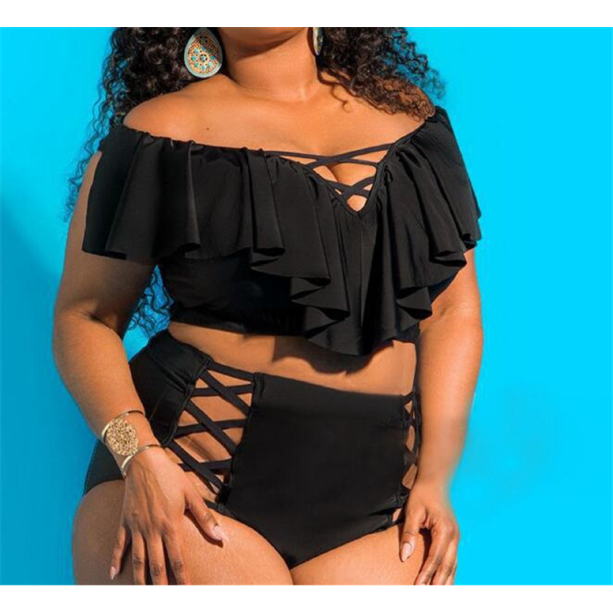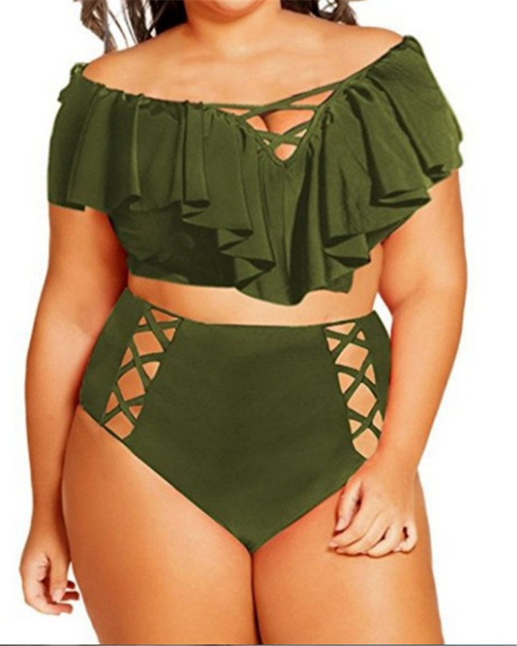 Lady Off-shoulder Hollow Flounced High Waist Swimsuit